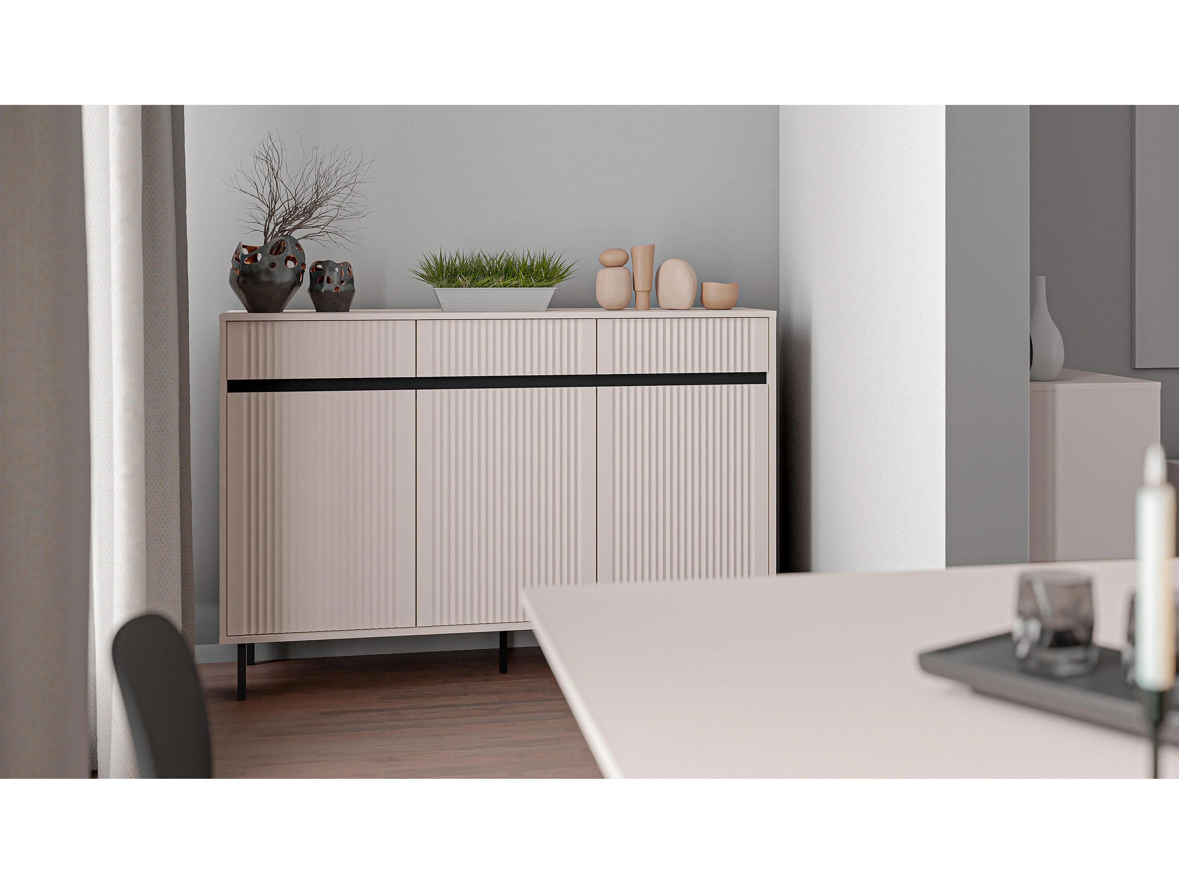 AX LIVING Buffet BODRUM 3 portes 3 tiroirs 149 cm beige sable