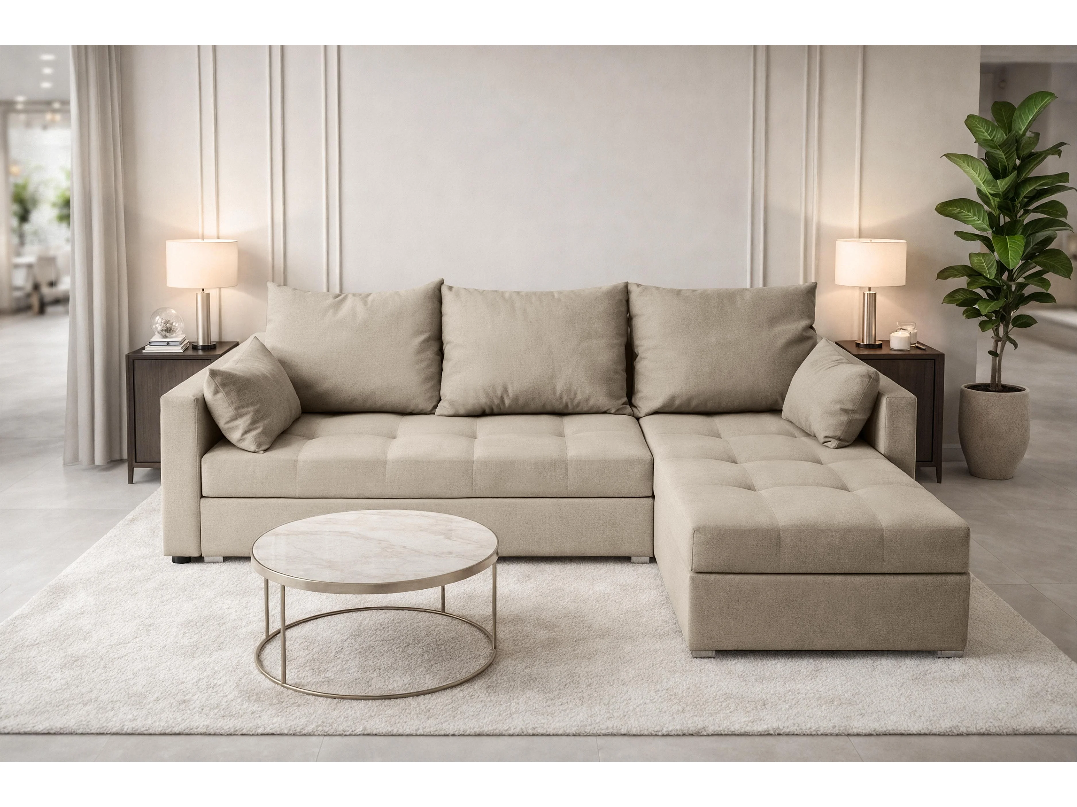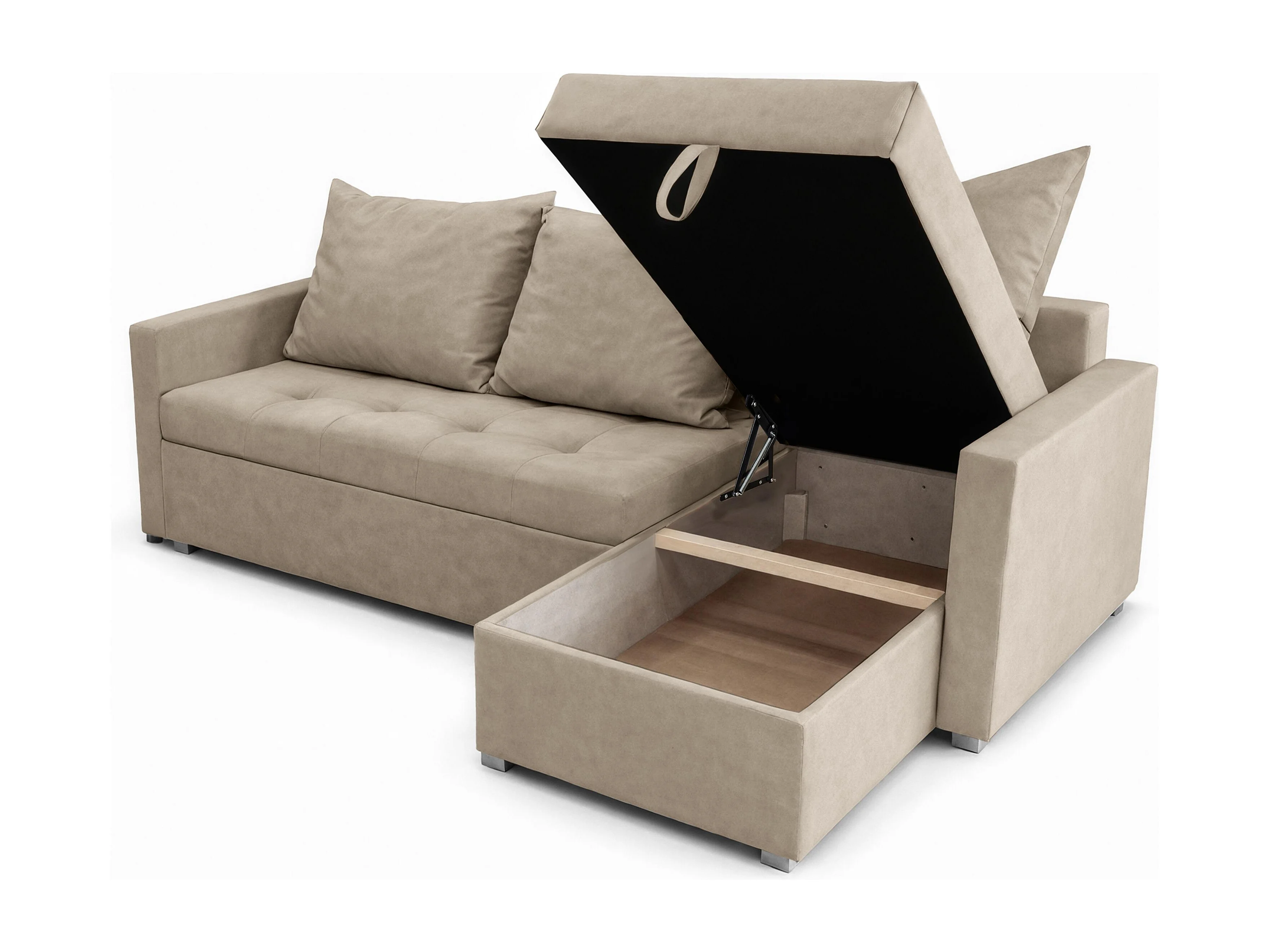 AX LIVING Canapé d’angle ELIF beige convertible avec coffre L moderne droite