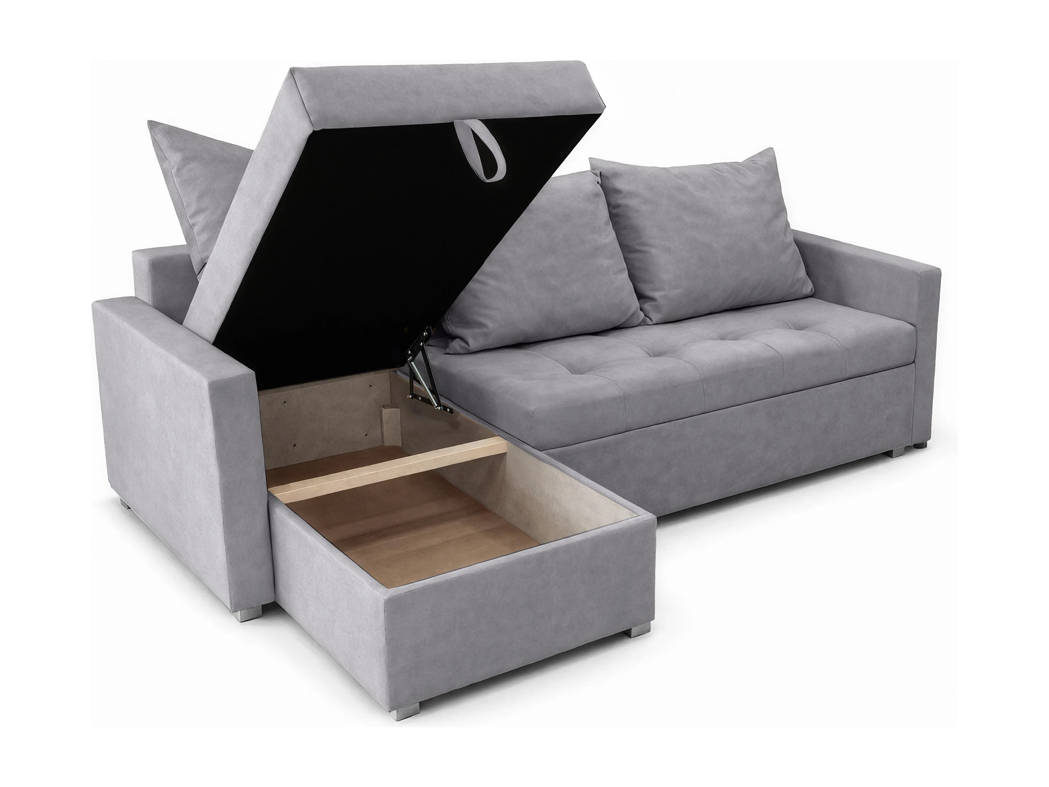 AX LIVING Canapé d’angle ELIF gris clair convertible avec coffre L moderne gauche