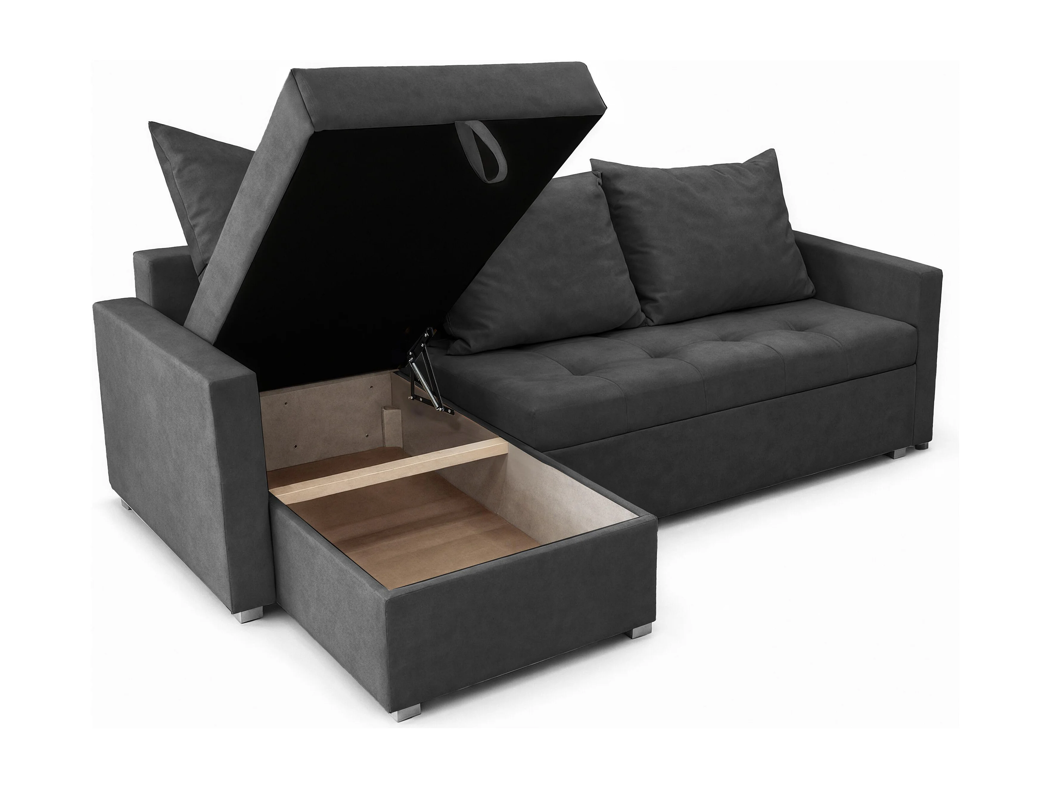 AX LIVING Canapé d’angle ELIF gris convertible avec coffre L moderne gauche