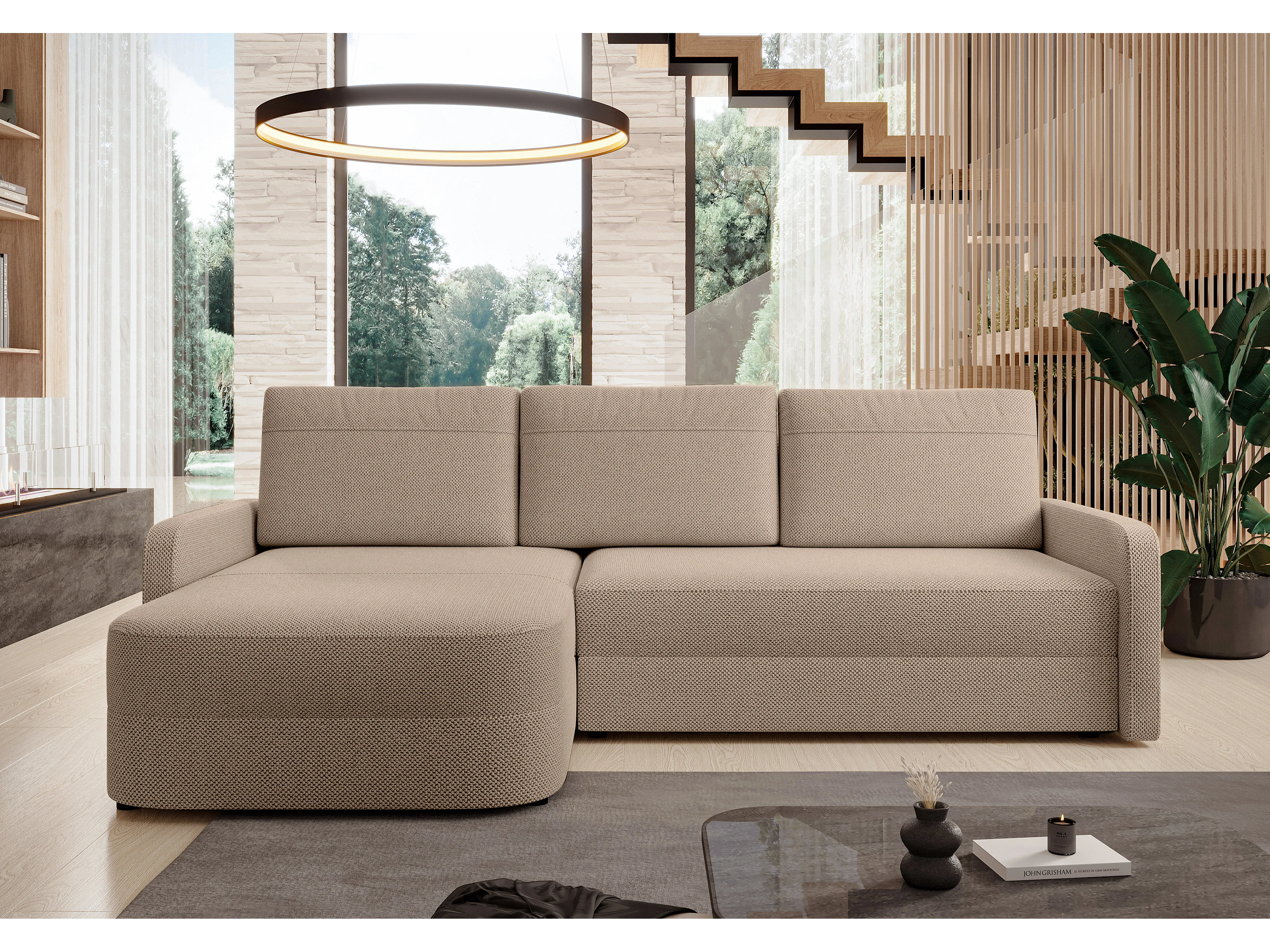 AX LIVING Canapé d’angle Nebbiolo 250 cm marron convertible