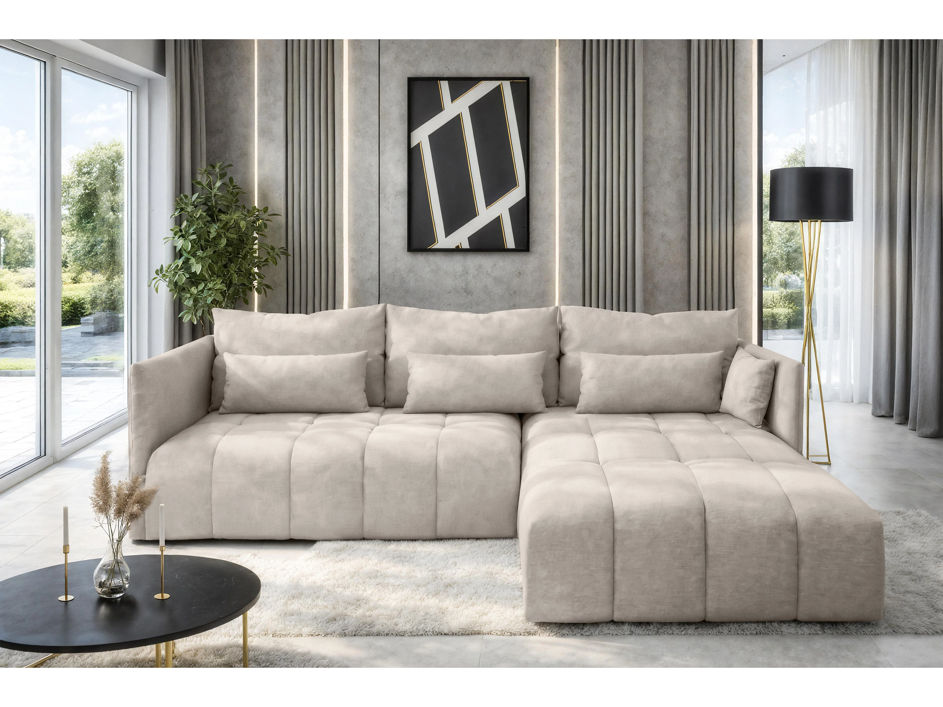AX LIVING Canapé d’angle convertible Gaziante 248 cm beige avec coffre