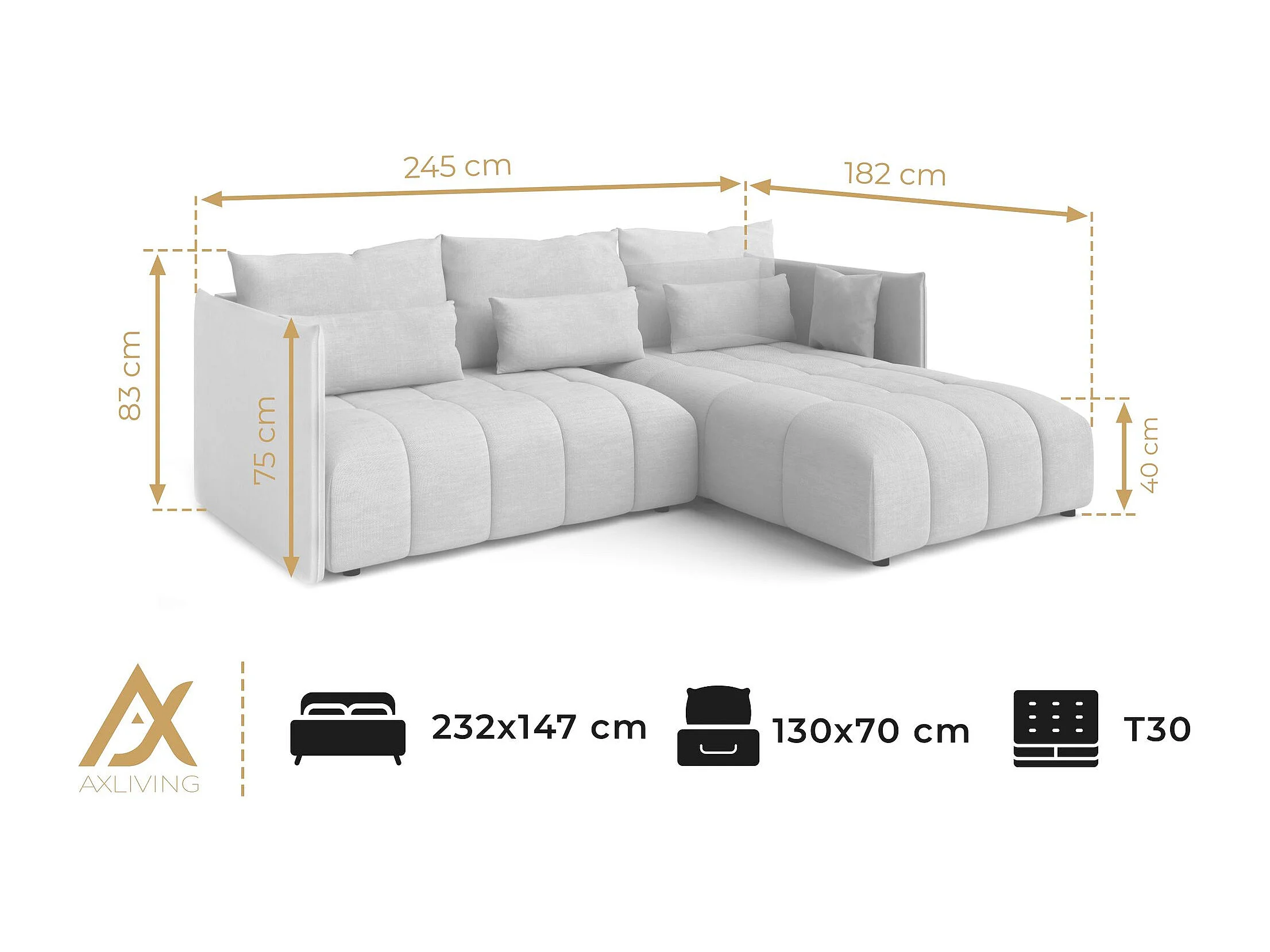 AX LIVING Canapé d’angle convertible Gaziante – 245cm gris avec coffre