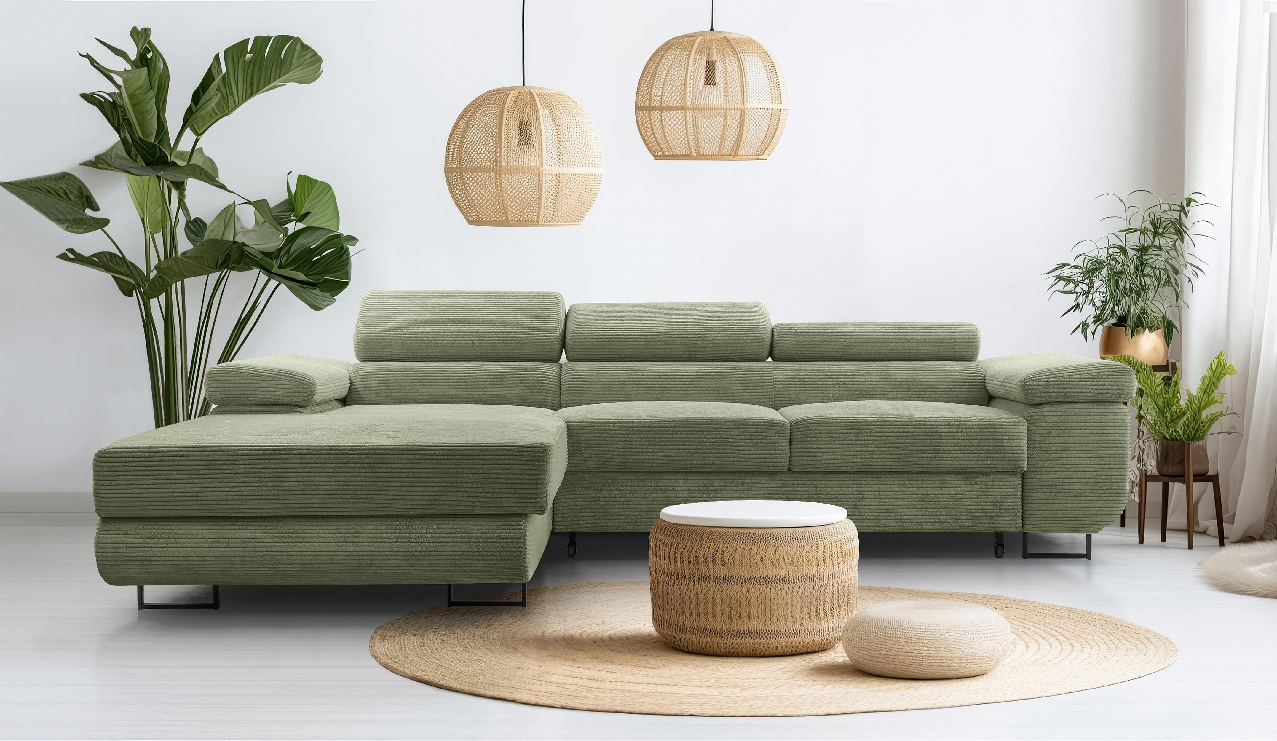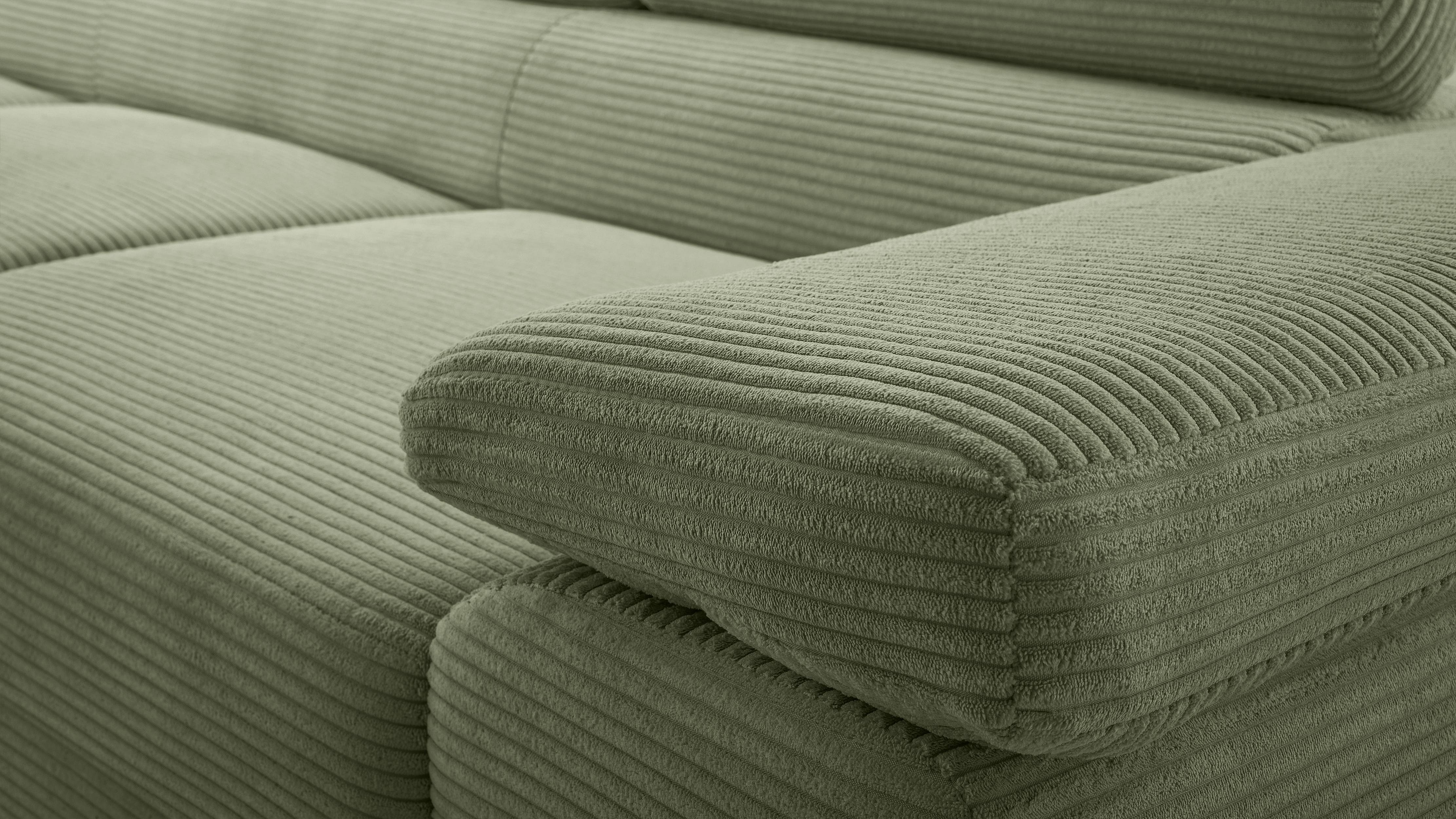 AX LIVING Canapé d’angle en velours côtelé Arborio 280 cm vert sauge G