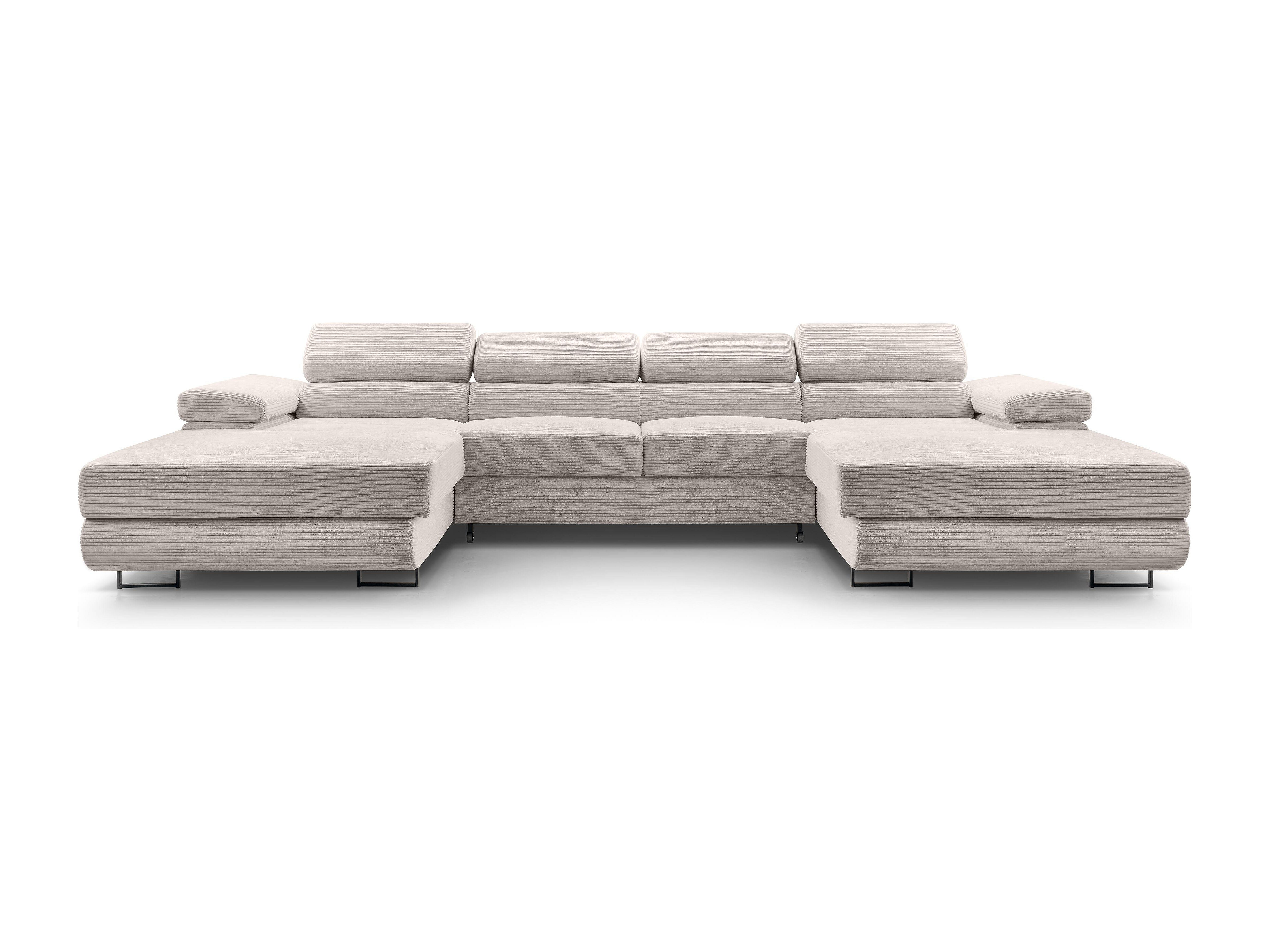 AX LIVING Canapé panoramique en U blanc Catea avec fonction lit 364 cm