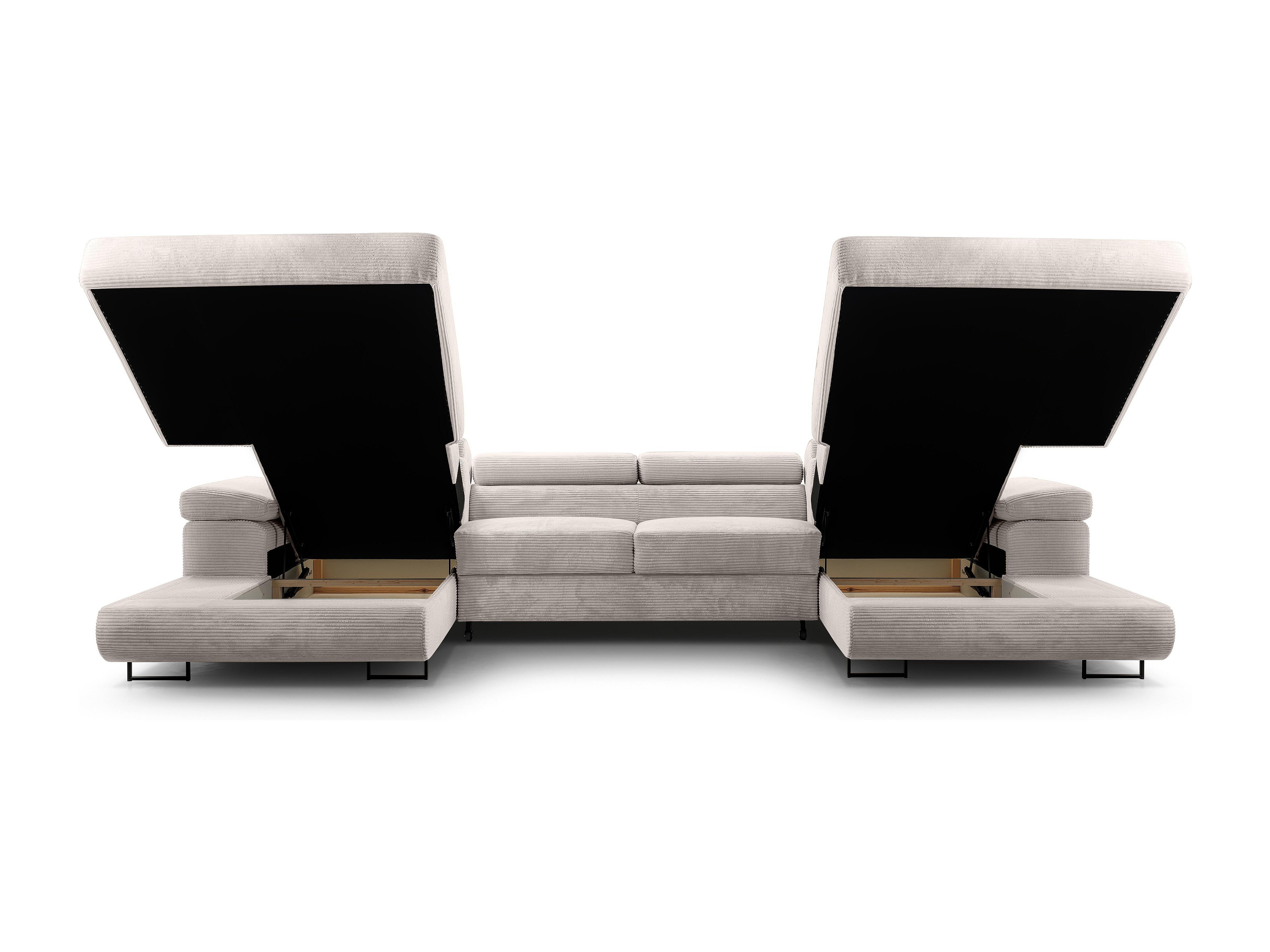 AX LIVING Canapé en U avec fonction lit – Arborio U 352 cm blanc cassé