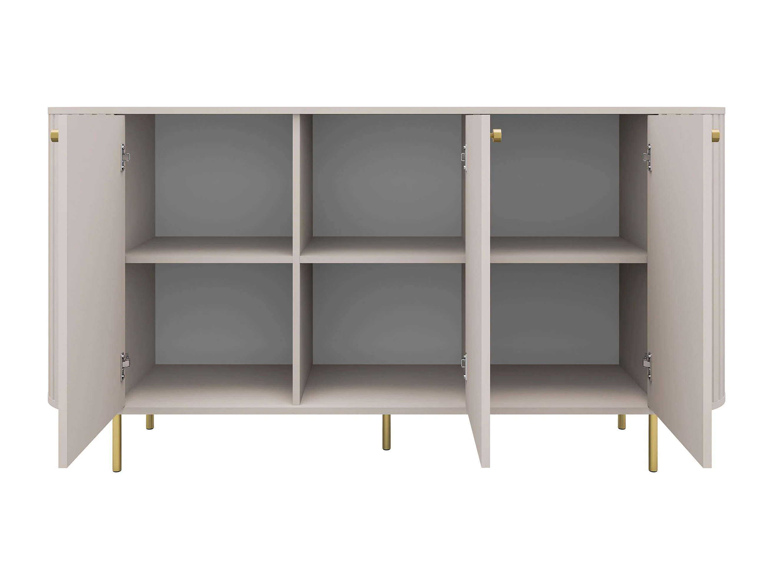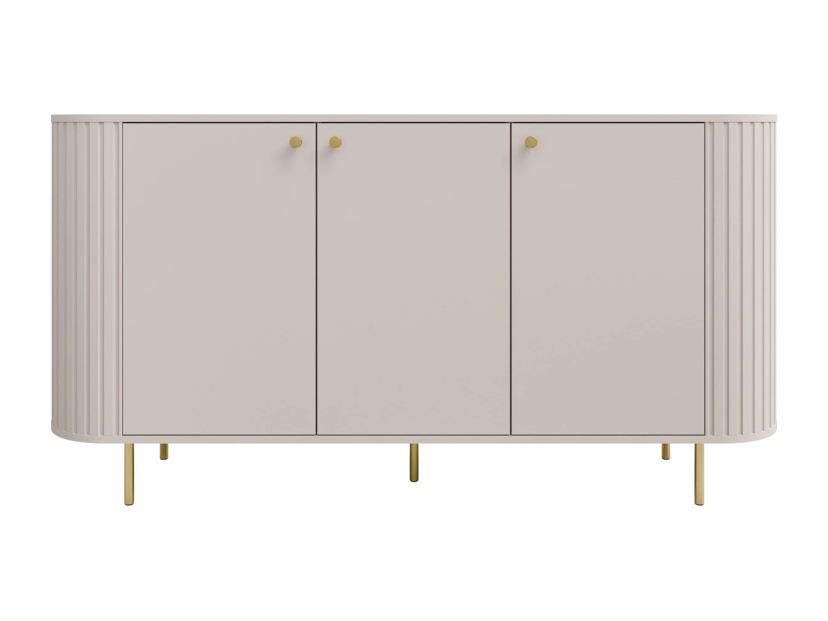 AX LIVING Commode Halay beige 3 portes façade rainurée 165 cm bords arrondis