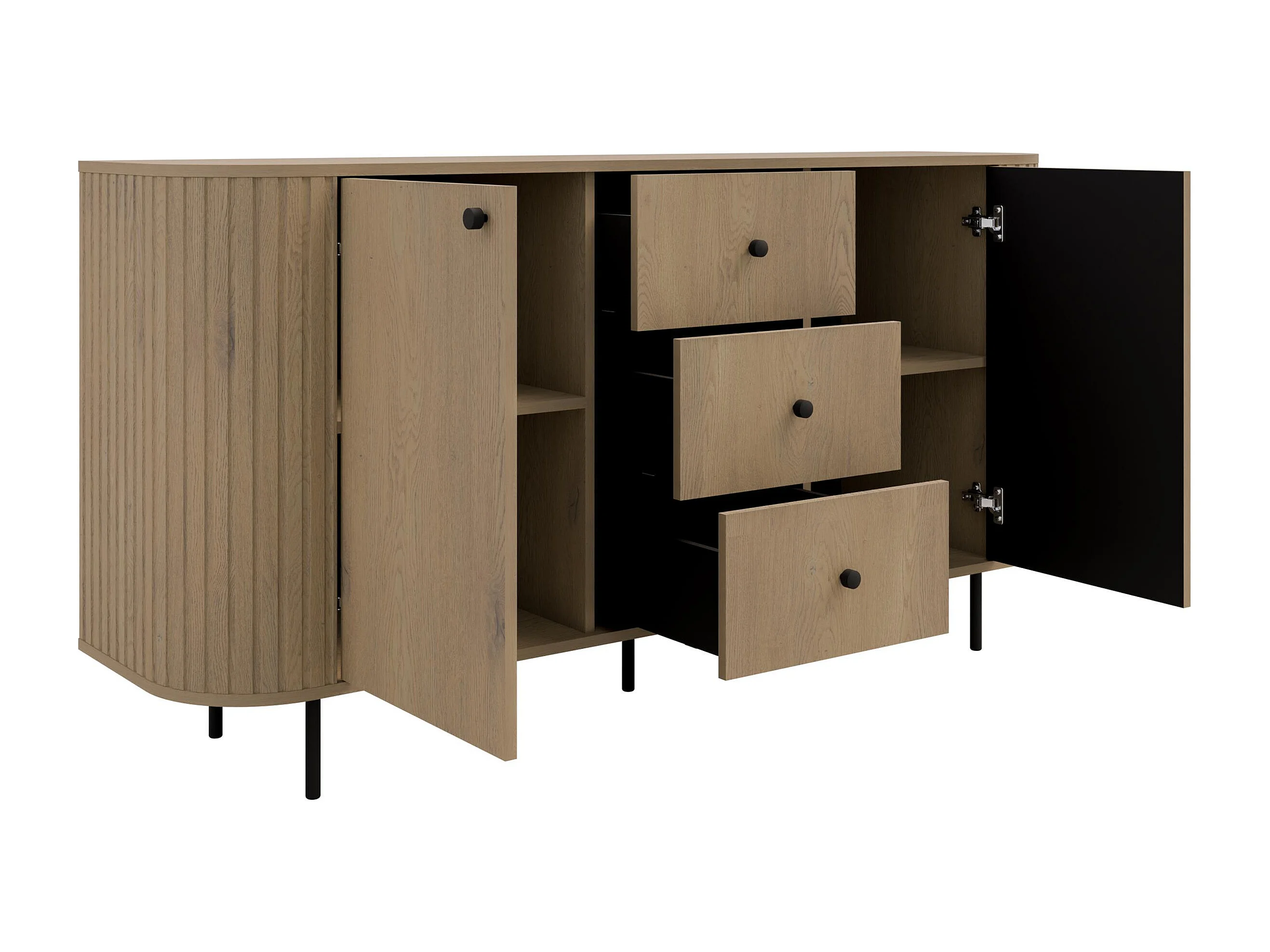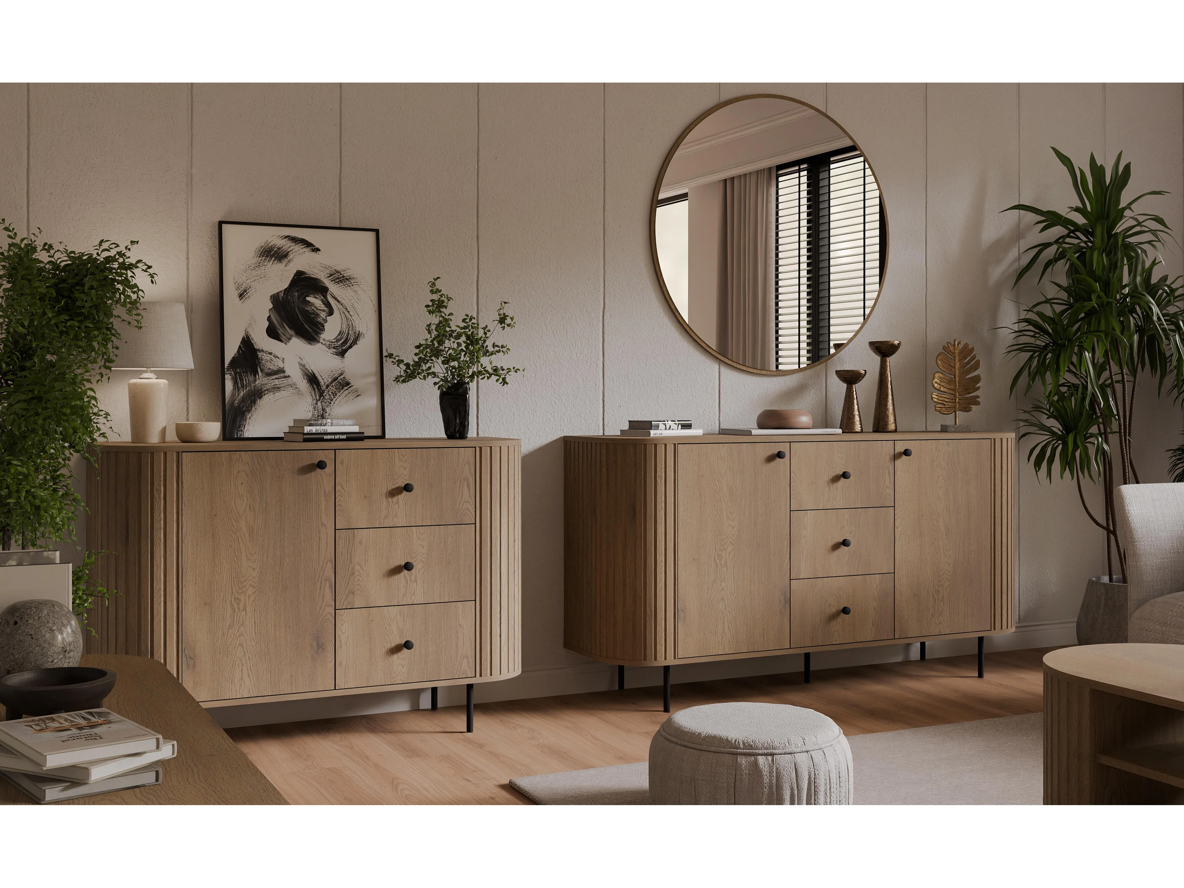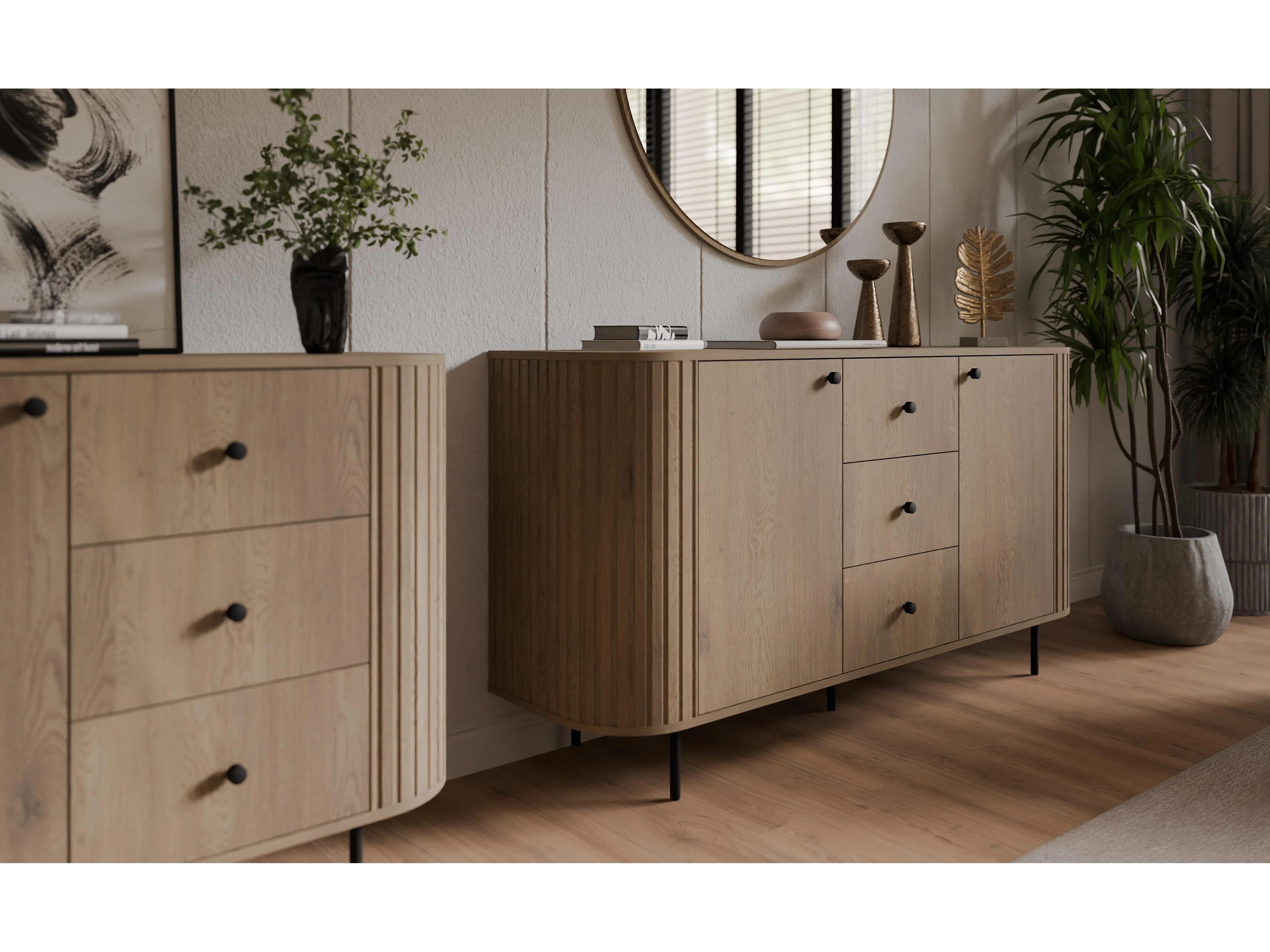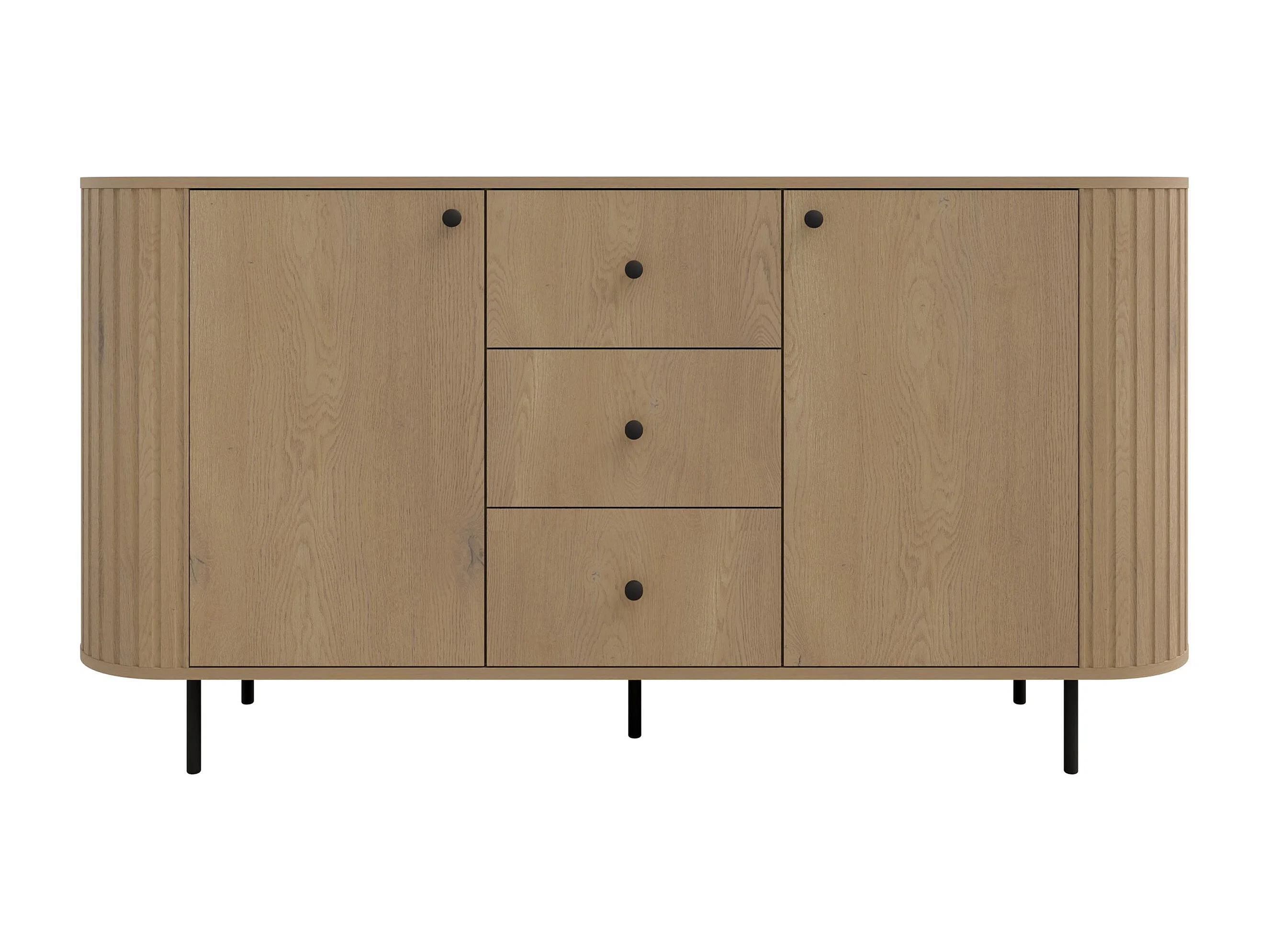 AX LIVING Commode Halay chêne Cremona 2 portes 3 tiroirs façade rainurée 165 cm