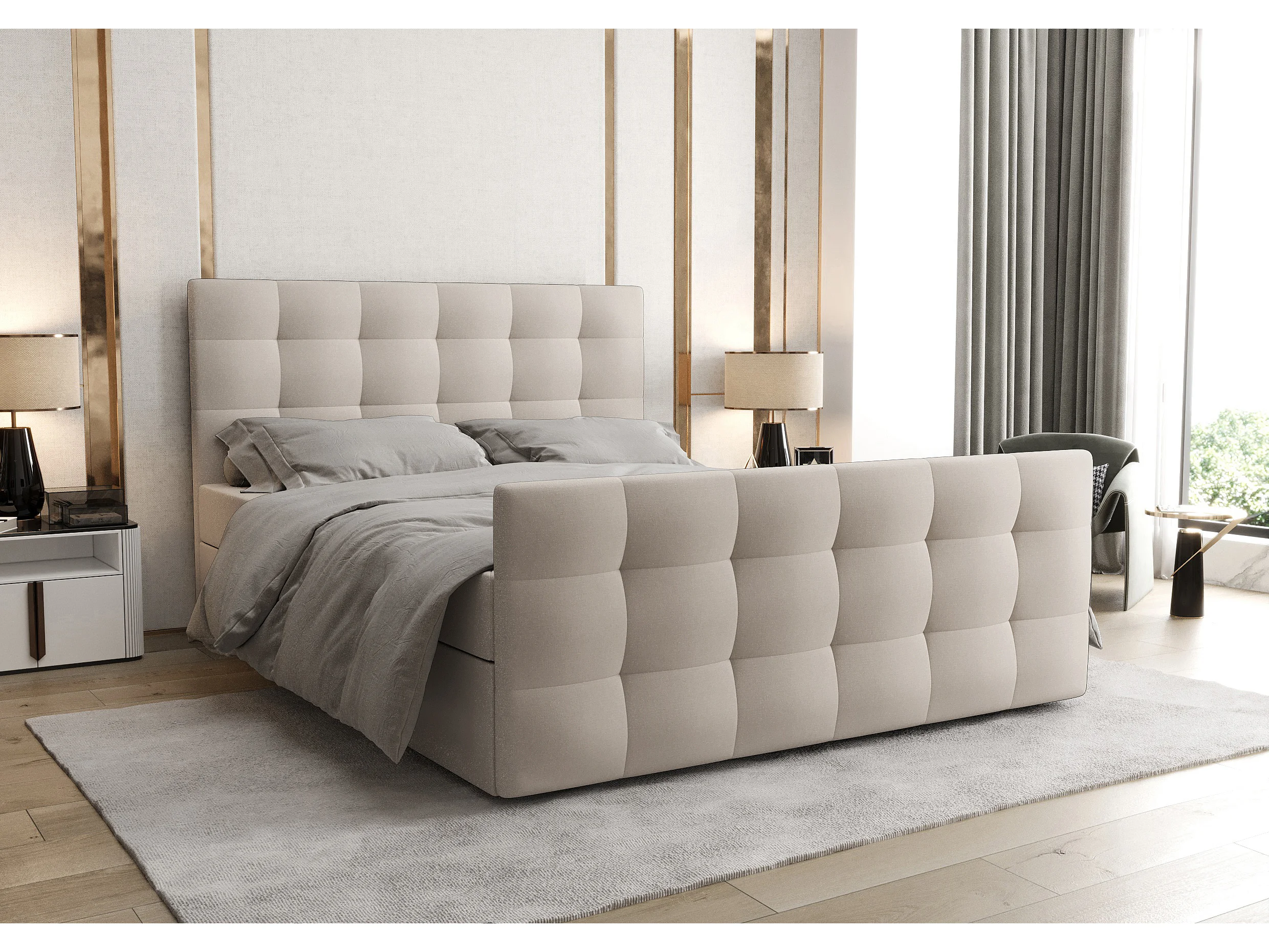 AX LIVING lit boxspring 140x200 avec coffre de rangement Orchido beige – luxe sans surmatelas