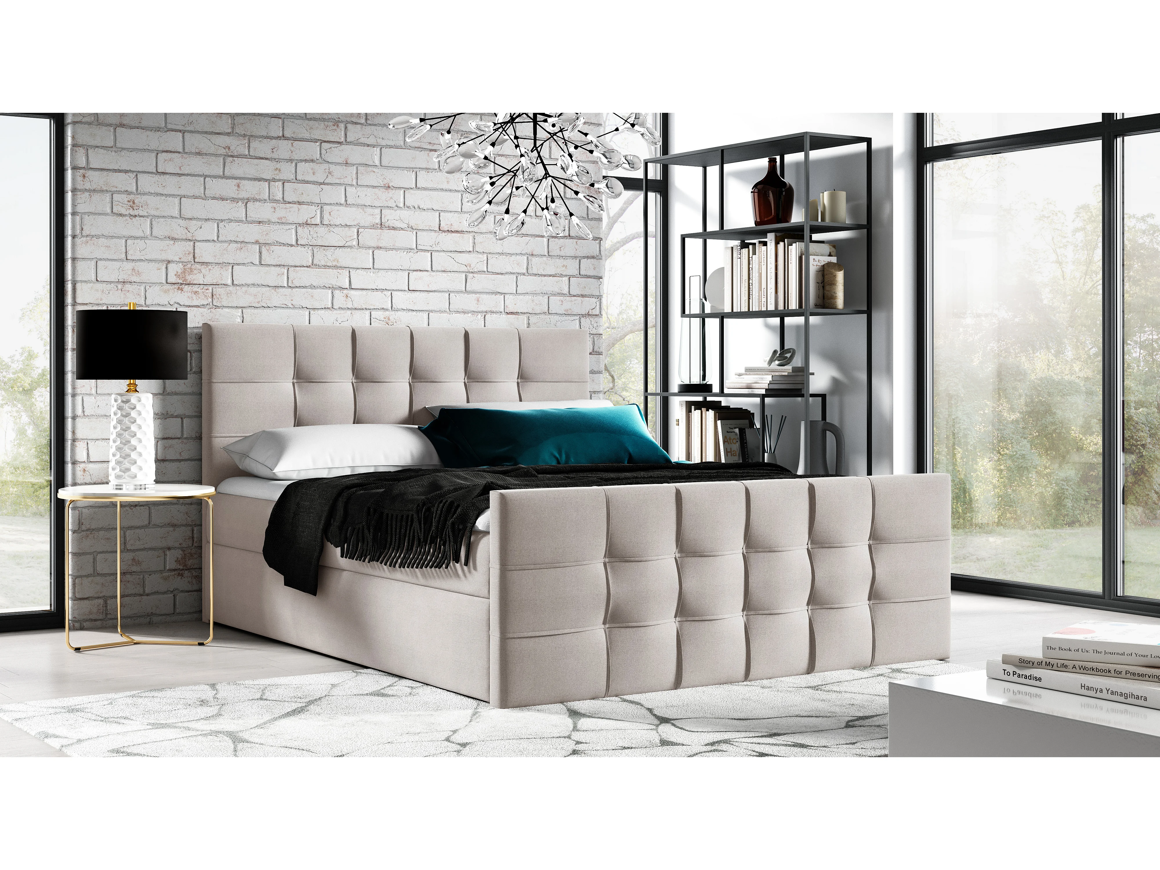 AX LIVING lit boxspring 180x200 avec coffre de rangement Ambusio beige