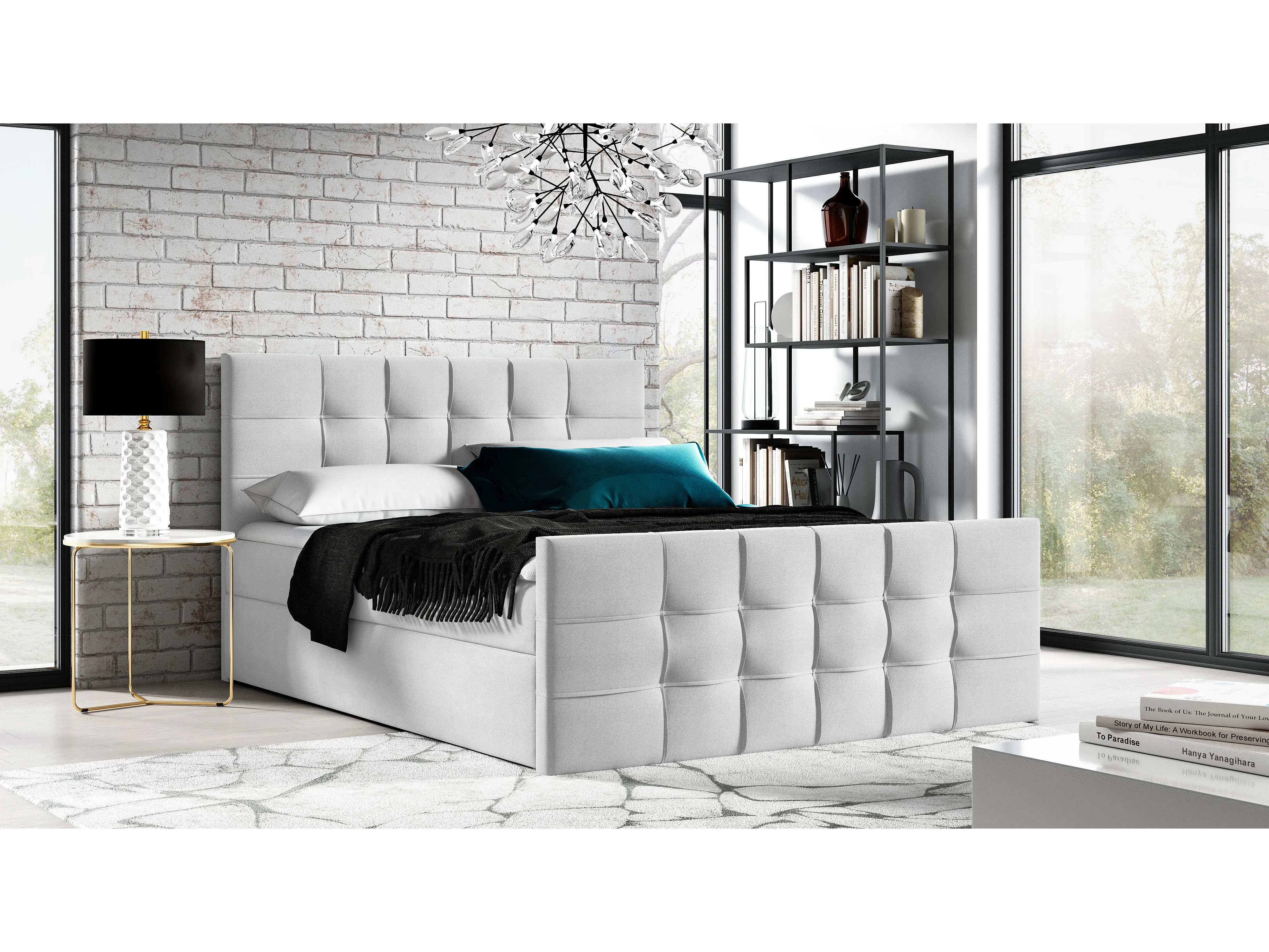 AX LIVING lit boxspring 180x200 avec coffre de rangement Ambusio gris clair