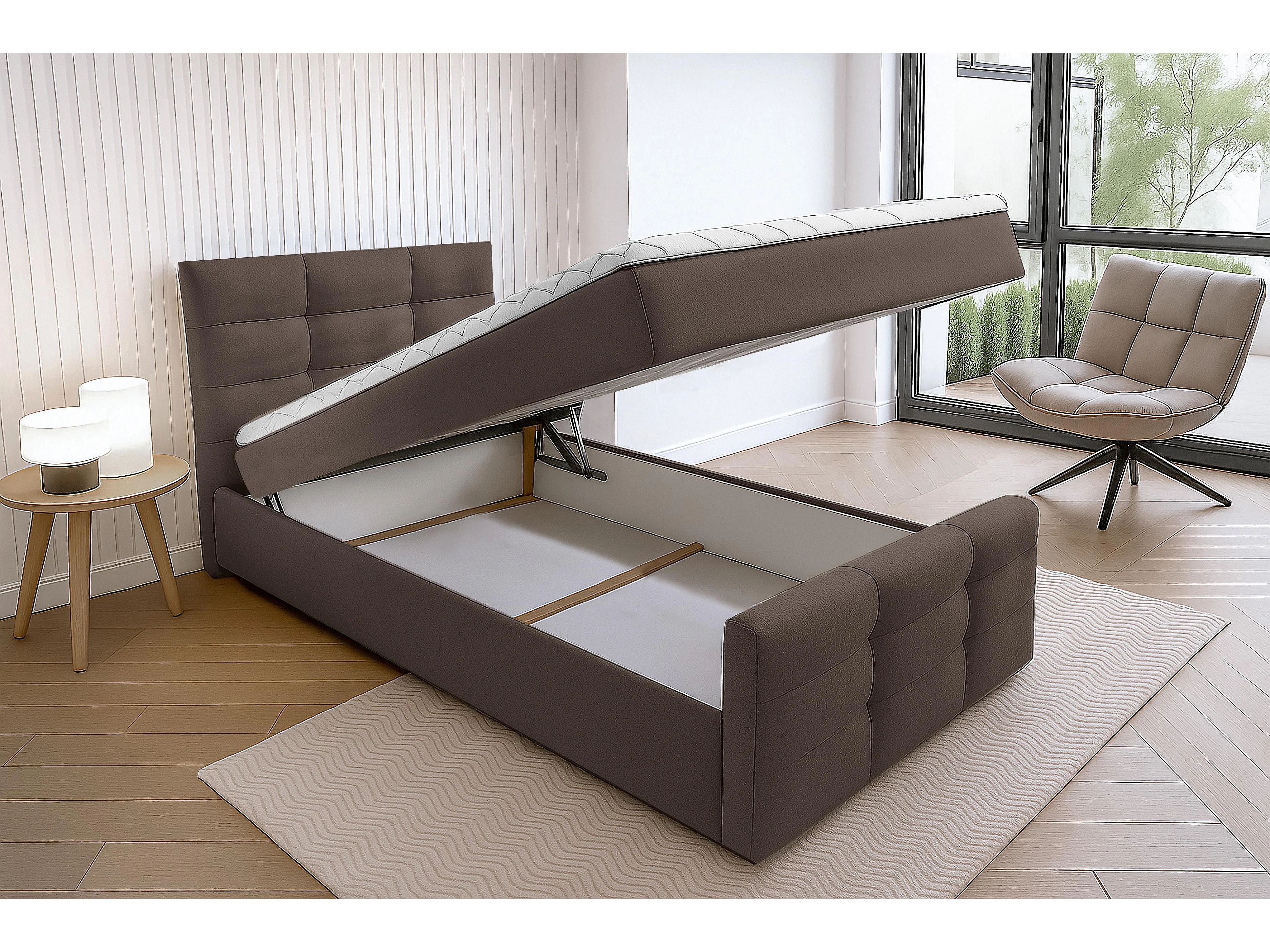AX LIVING Lit boxspring avec coffre de rangement 100x200 cm - Argentaro - marron sans surmatelas