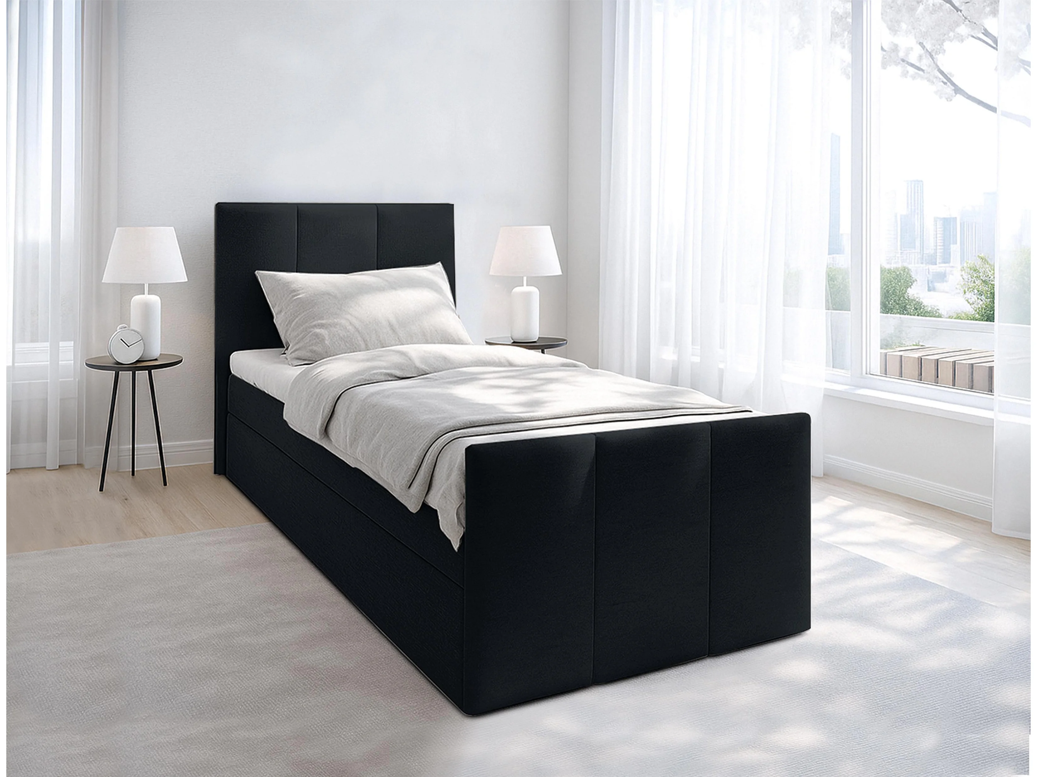AX LIVING Lit boxspring avec coffre de rangement 100x200 cm - Levente - noir sans surmatelas