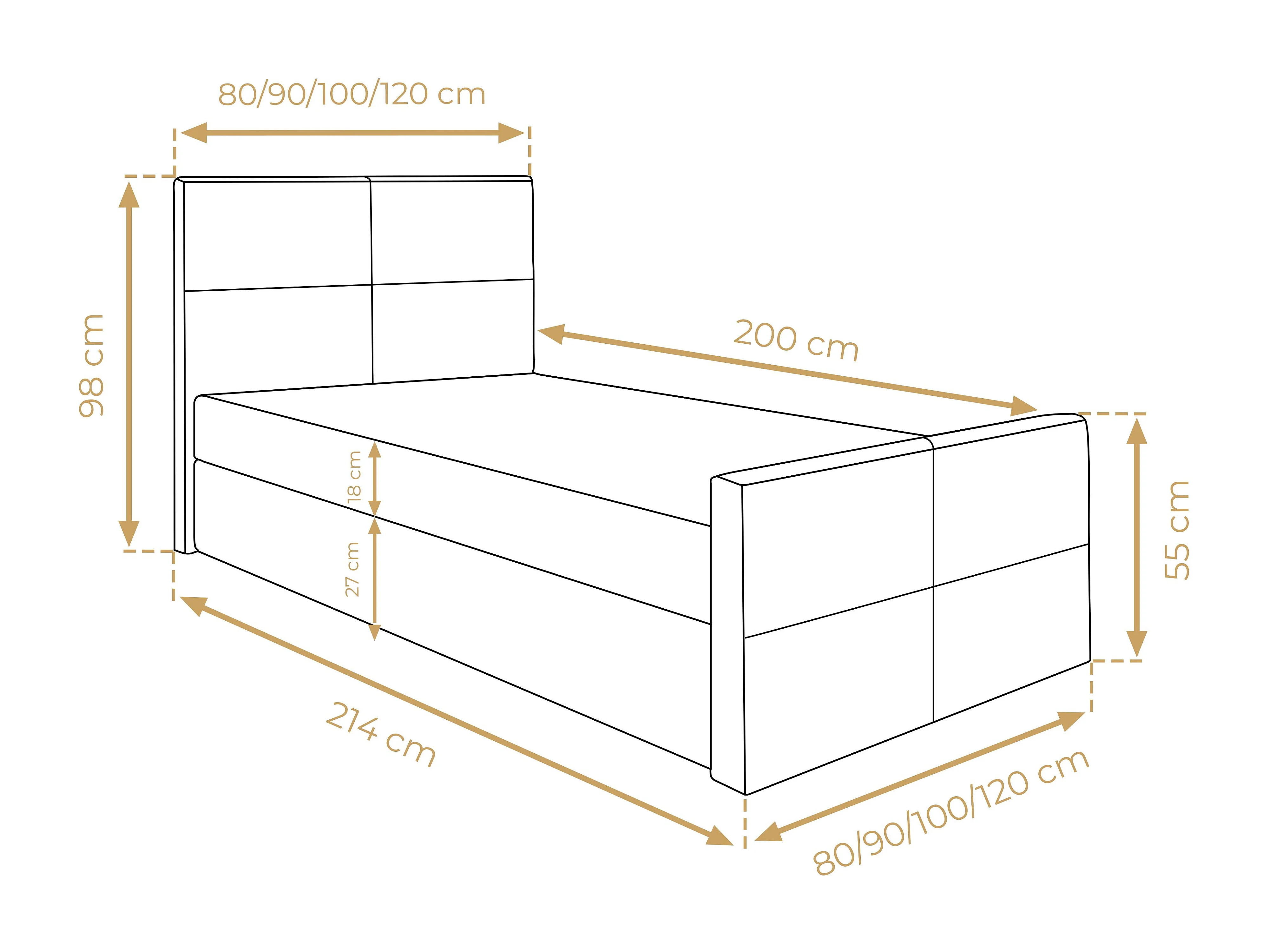 AX LIVING Lit boxspring avec coffre de rangement 120x200 cm - Aleyna - beige sans surmatelas