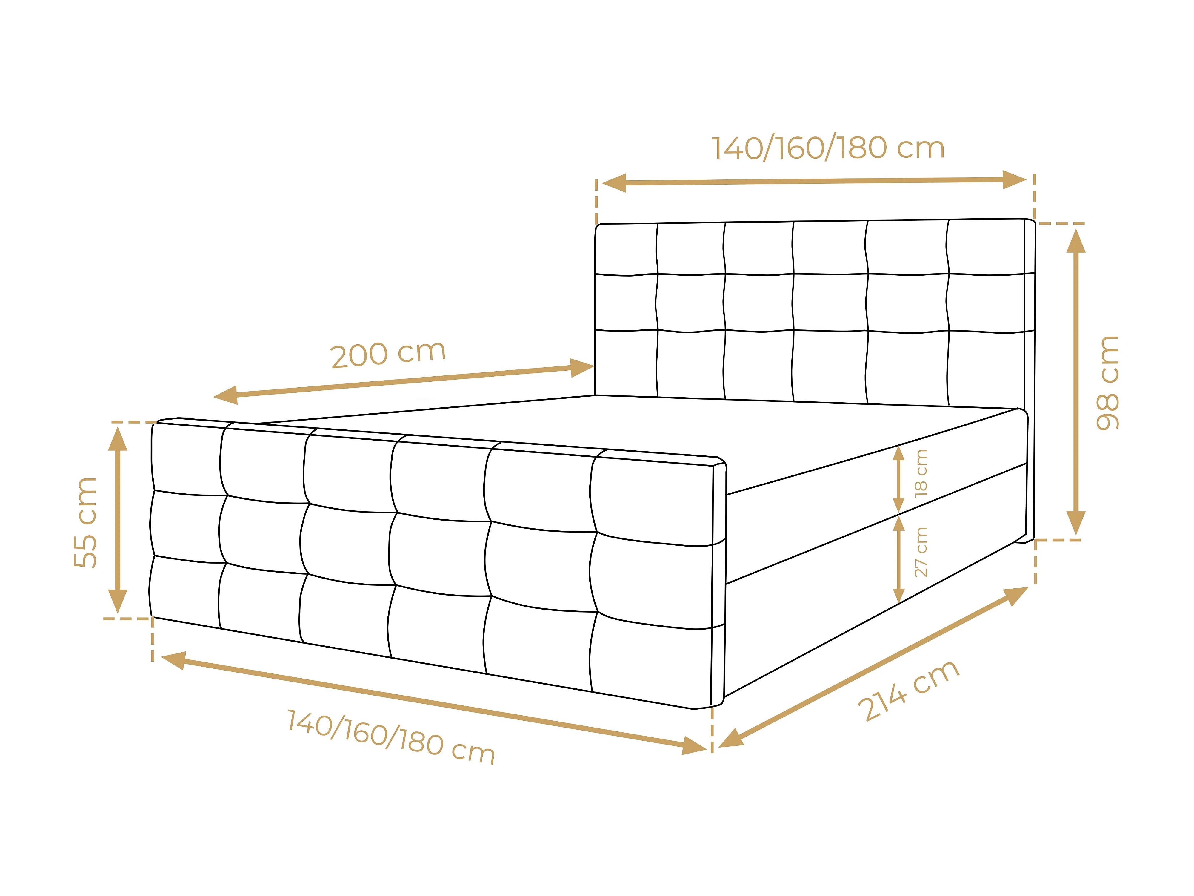 AX LIVING Lit boxspring avec coffre de rangement 140x200 cm - Argentaro - gris sans surmatelas