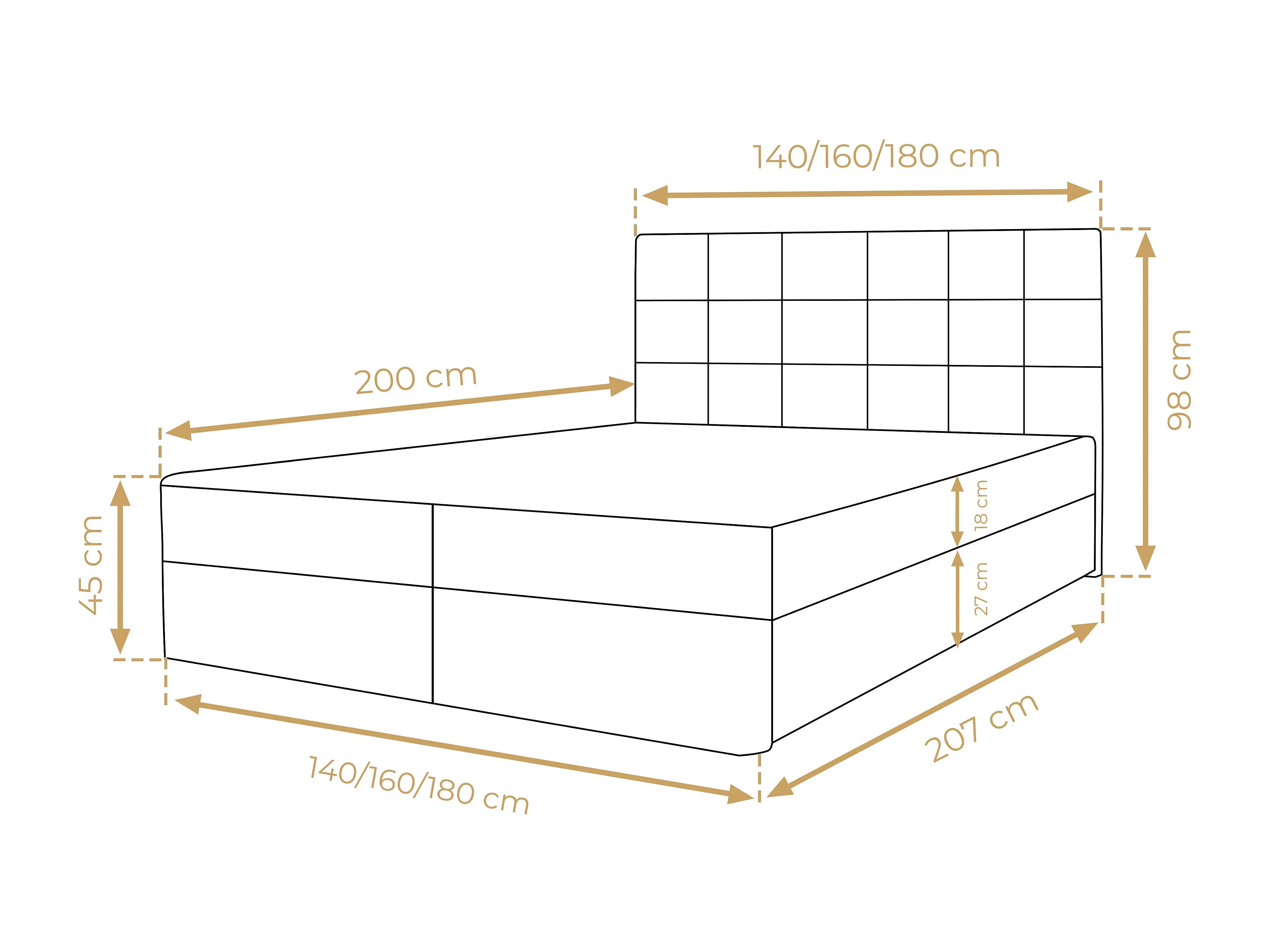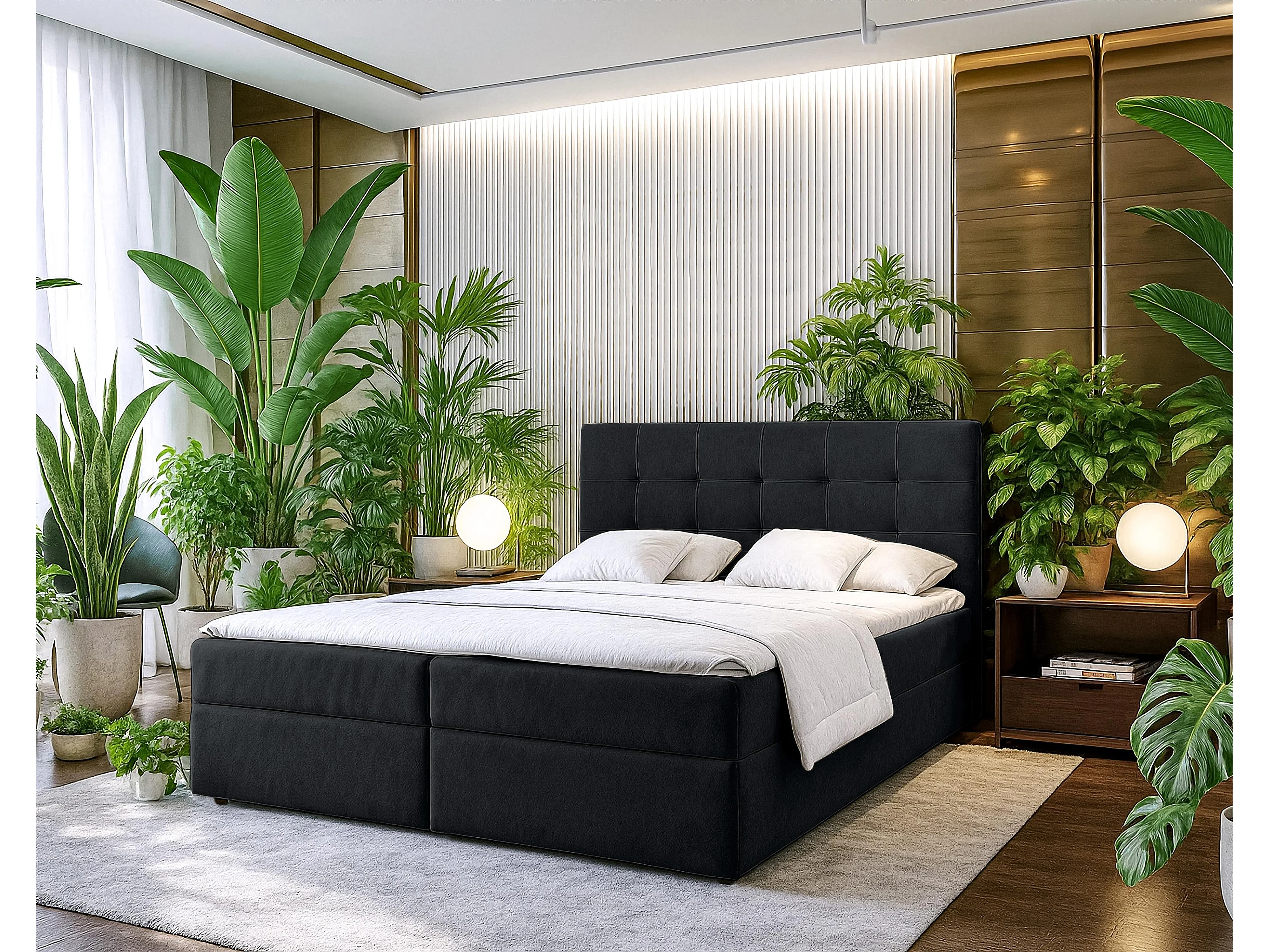 AX LIVING Lit boxspring avec coffre de rangement 140x200 cm - Geceteni - noir sans surmatelas