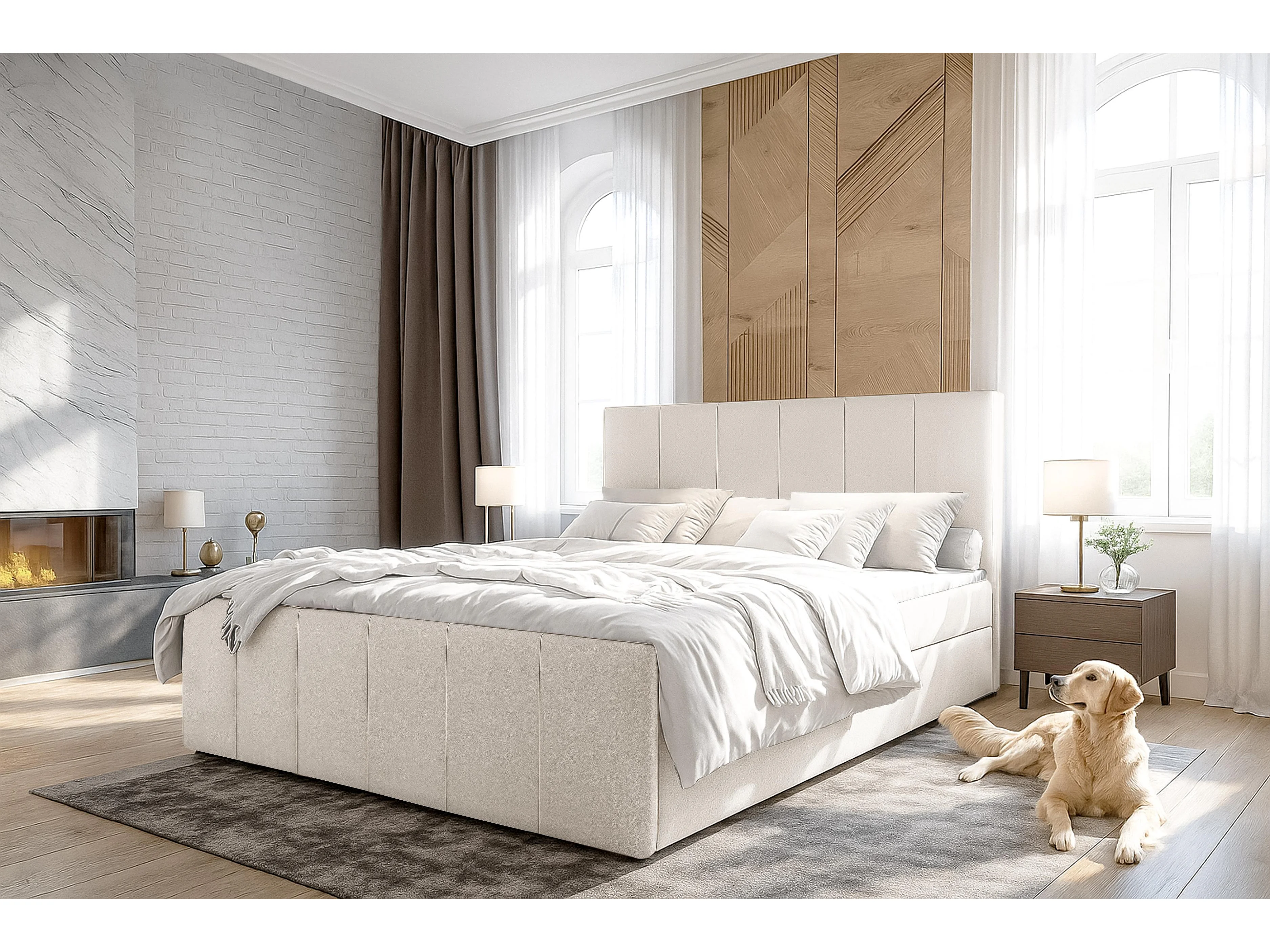 AX LIVING Lit boxspring avec coffre de rangement 140x200 cm - Levente - beige sans surmatelas