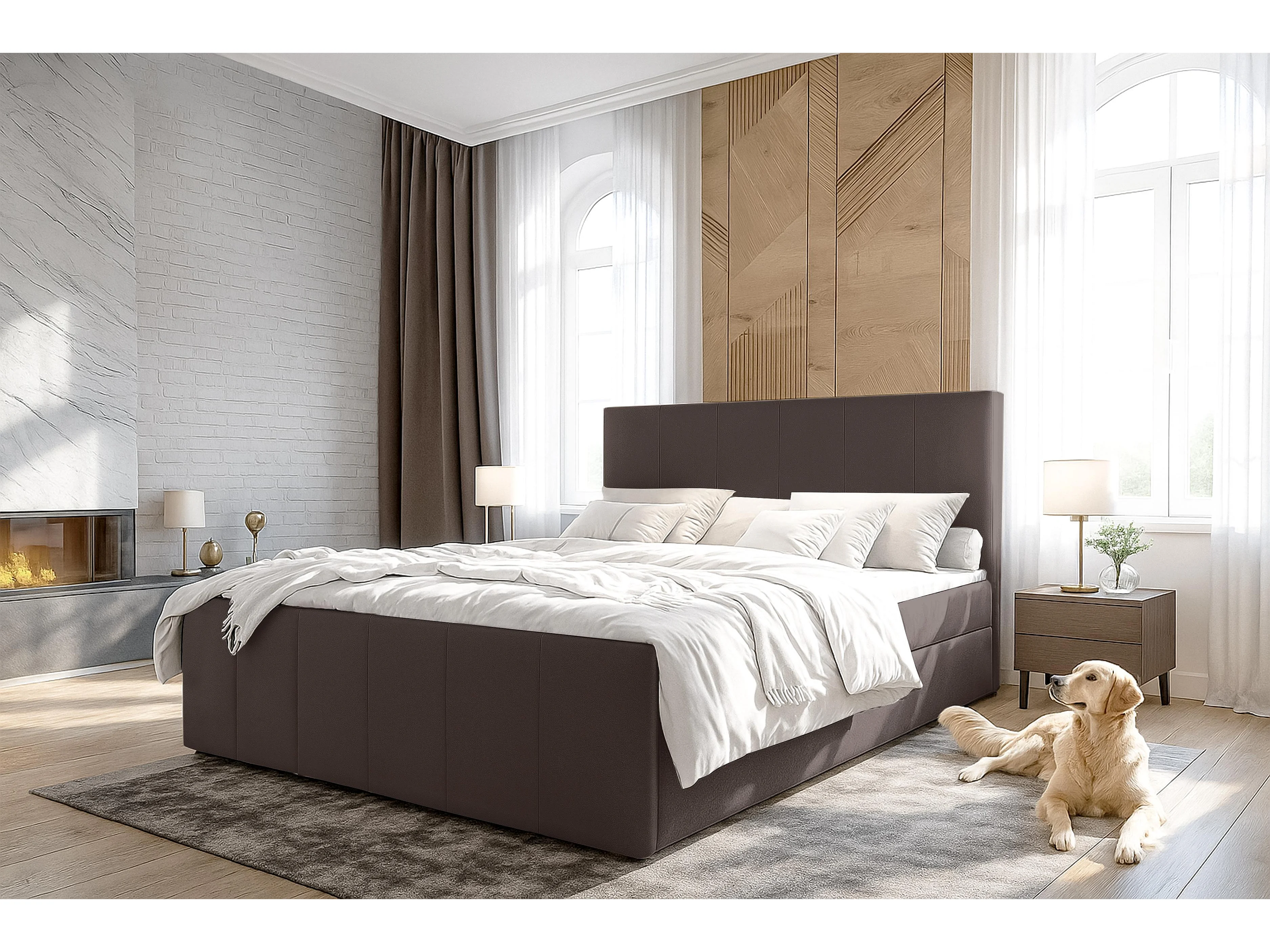 AX LIVING Lit boxspring avec coffre de rangement 140x200 cm - Levente - marron sans surmatelas