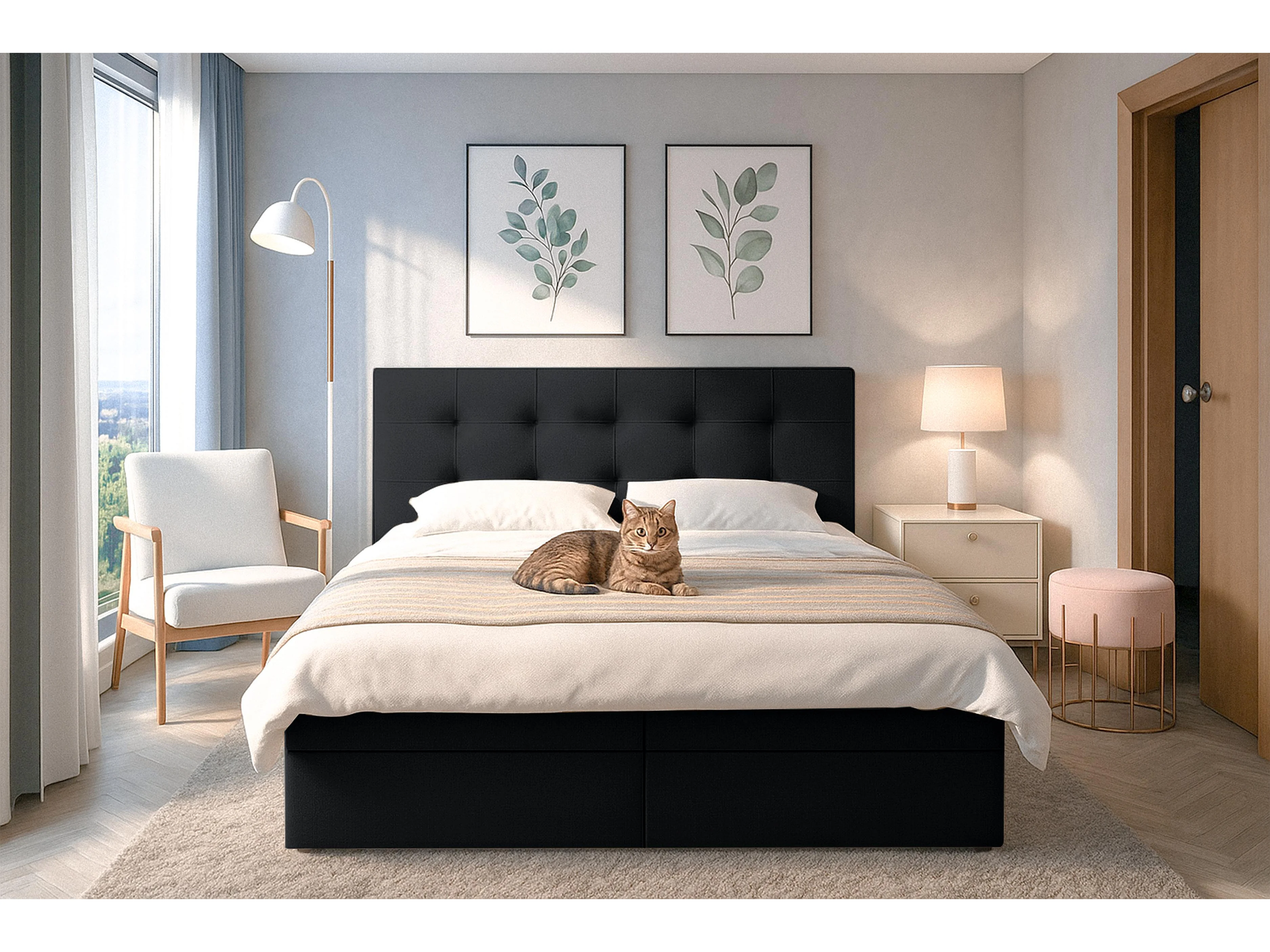 AX LIVING Lit boxspring avec coffre de rangement 160x200 cm - Belinai - gris sans surmatelas