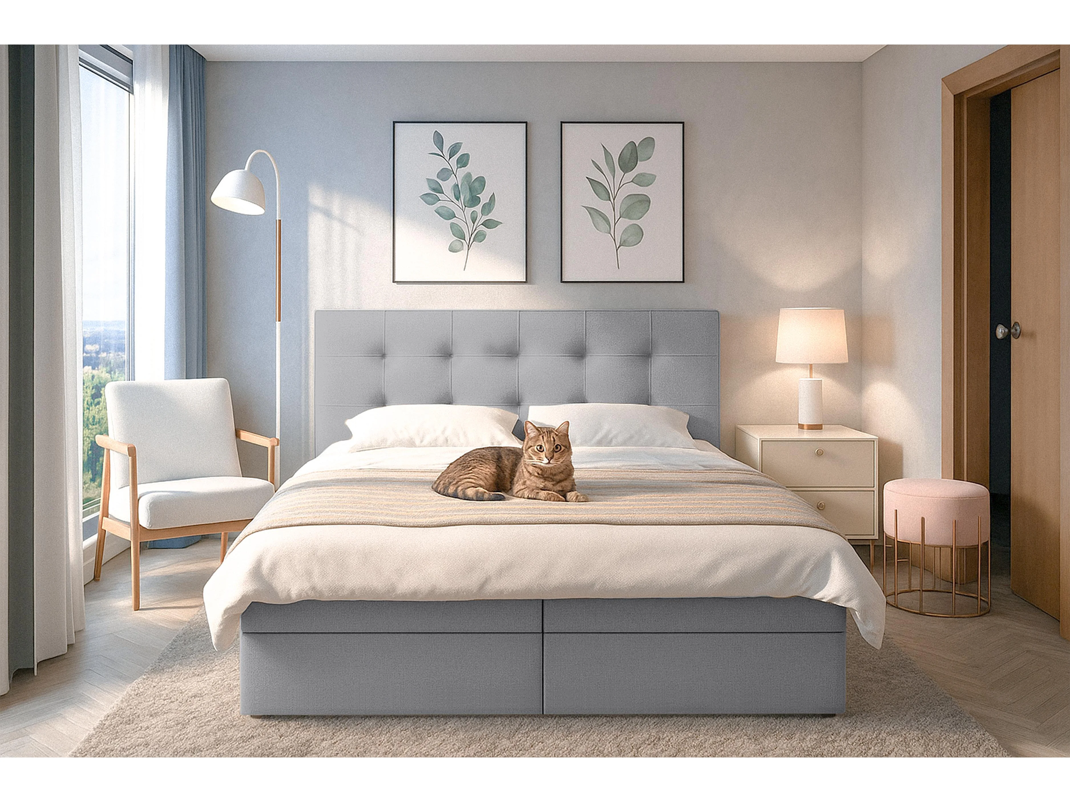AX LIVING Lit boxspring avec coffre de rangement 160x200 cm - Belinai - gris sans surmatelas