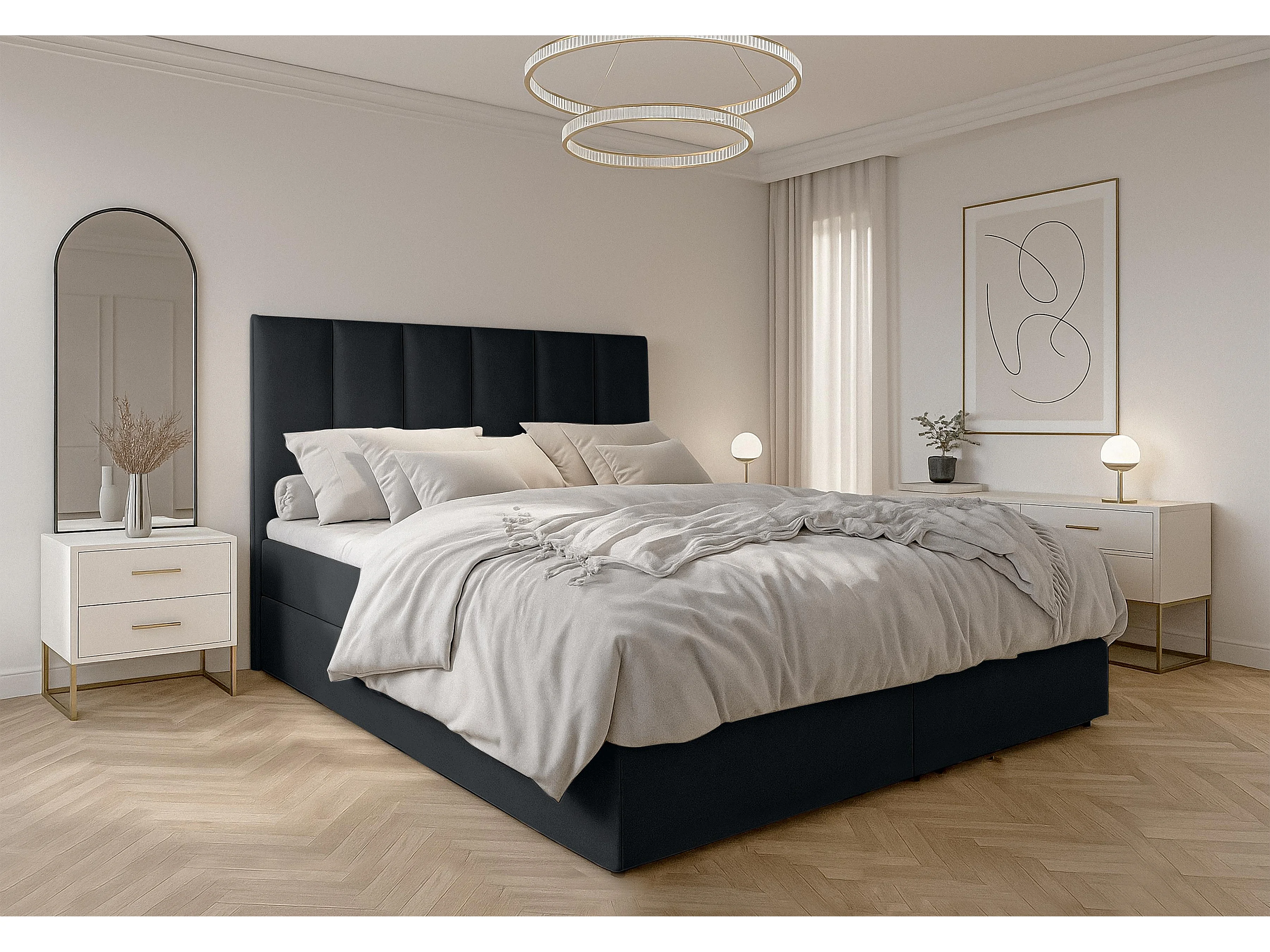 AX LIVING Lit boxspring avec coffre de rangement 160x200 cm - Merea - gris sans surmatelas