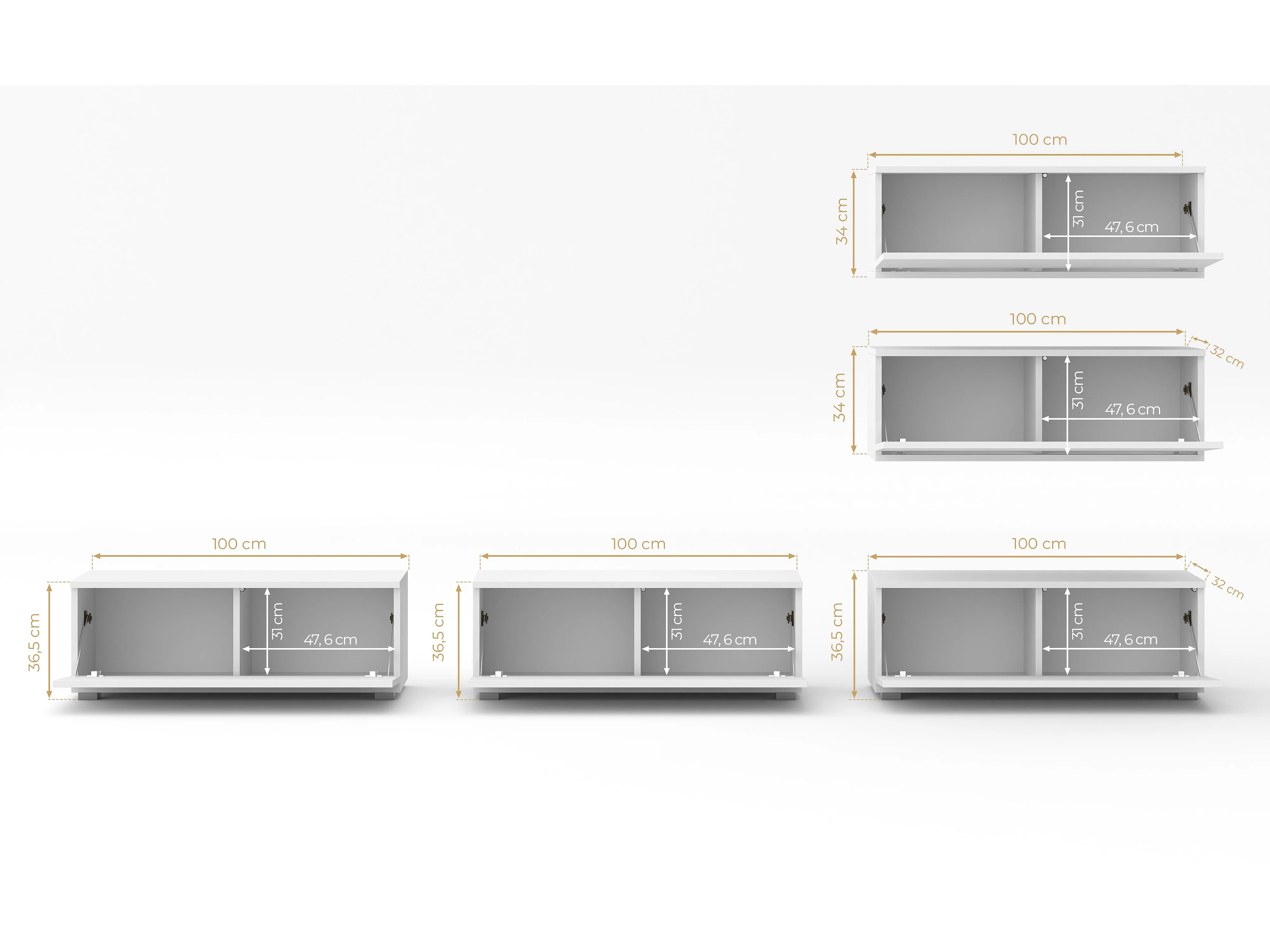 AX LIVING Meuble mural Loriano V 300 cm blanc mat/brillant