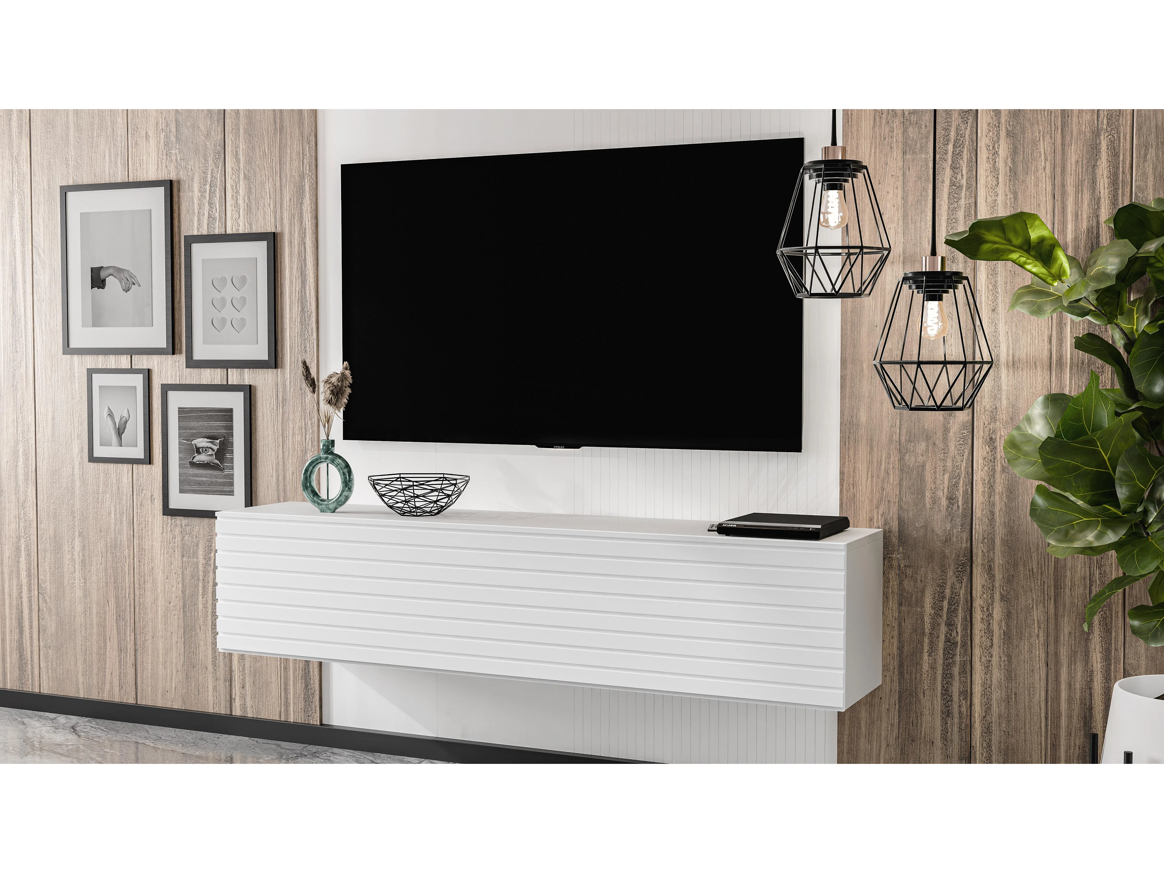 AX LIVING Meuble TV suspendu ZIVOLLI 160 cm façade à lamelles blanc/blanc
