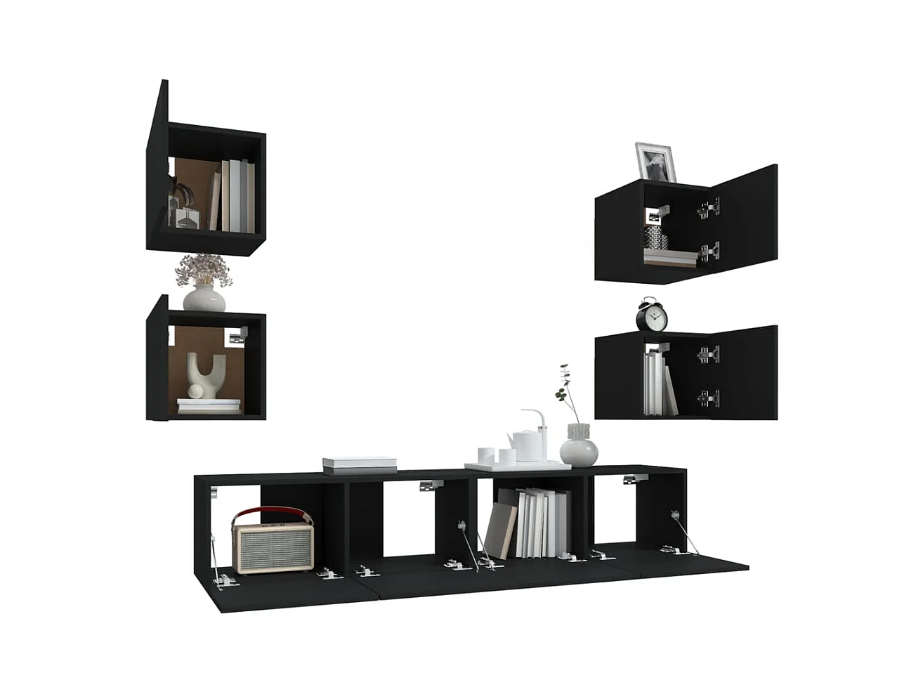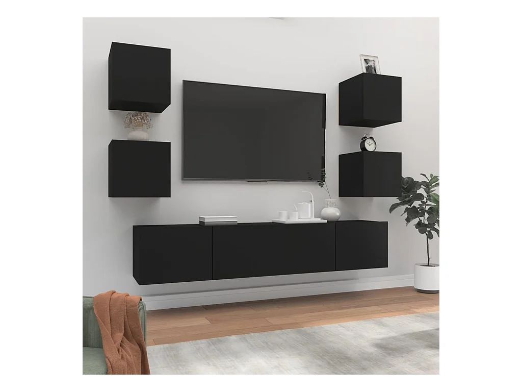Azra Ensemble de meubles TV 6 pcs Noir Bois d'ingénierie