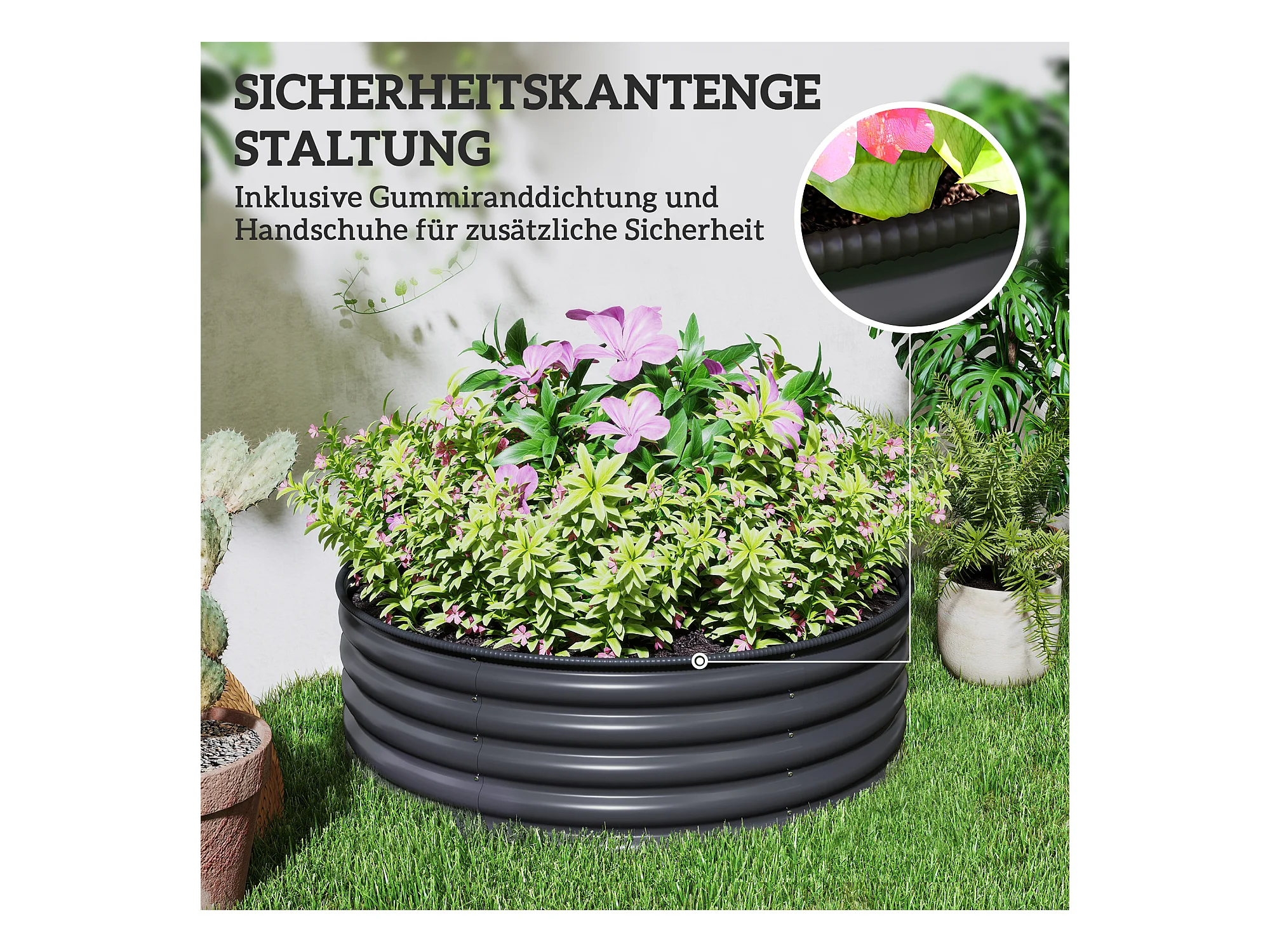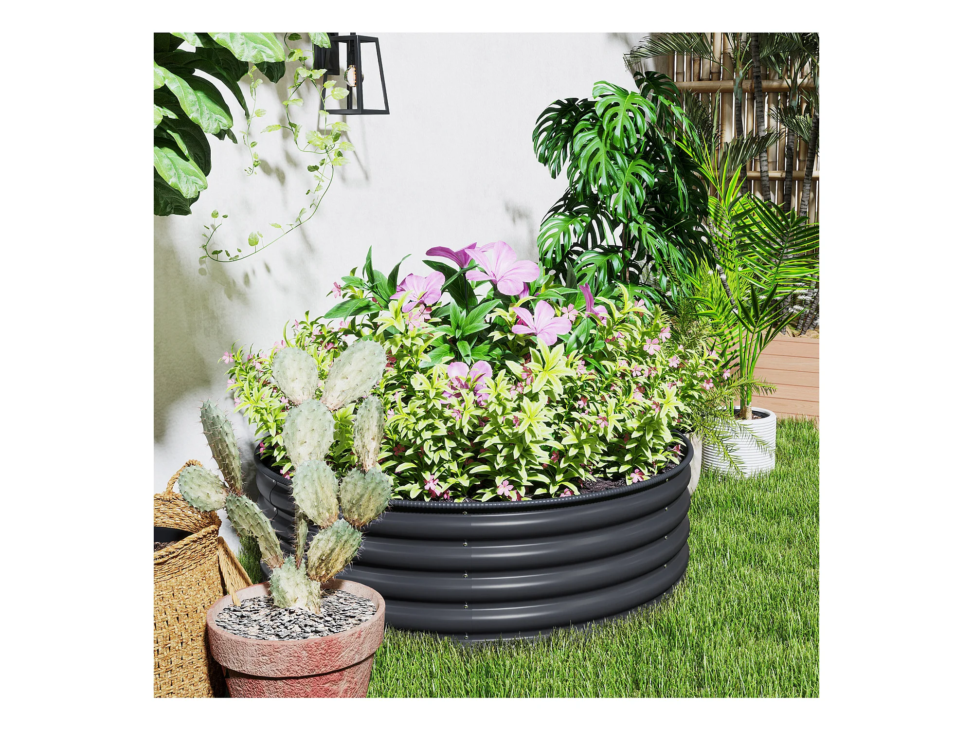 Bac à fleurs en acier, jardinière empilable, résistante aux intempéries, pour jardin et terrasse, couleur gris foncé (120x120x43 cm)