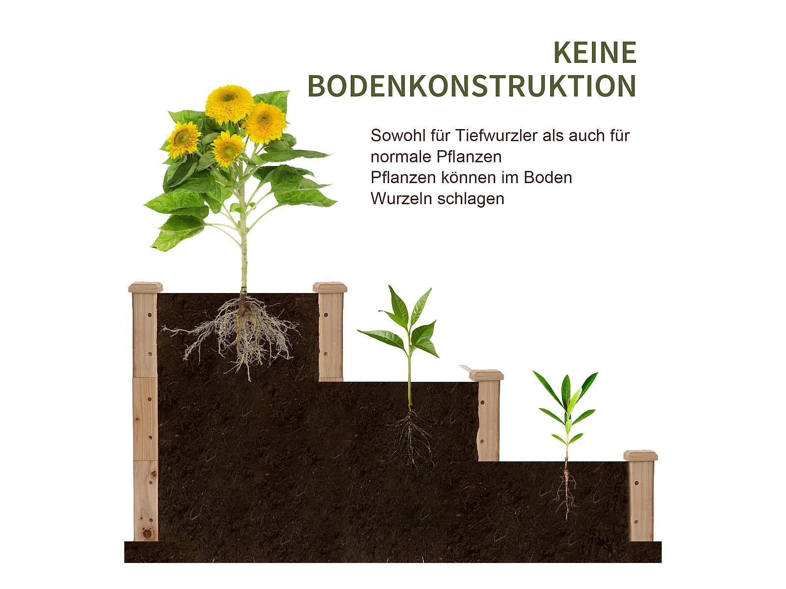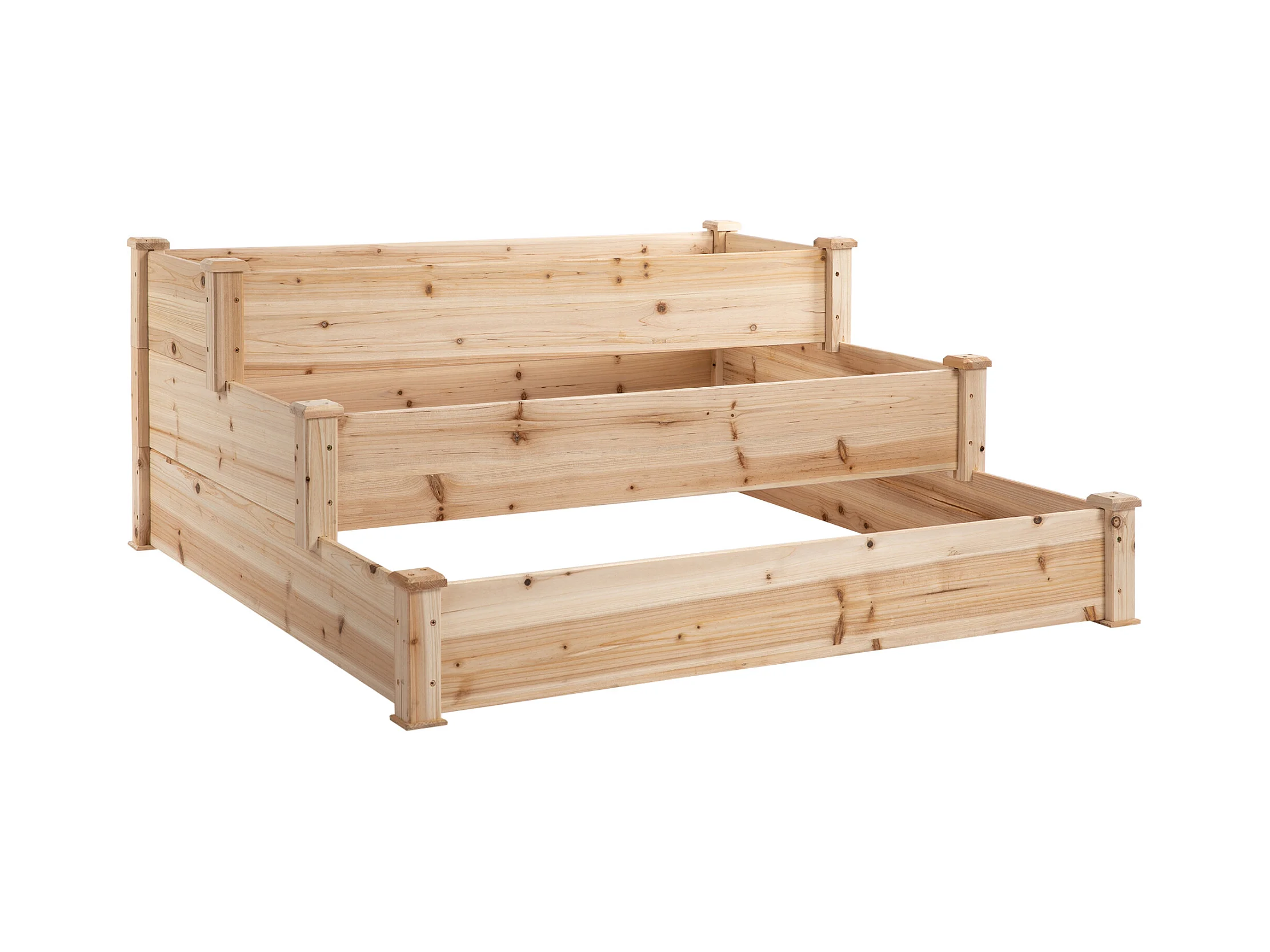 Bac à fleurs surélevé à 3 niveaux, bois massif, pour jardin et balcon (124x124x56 cm)