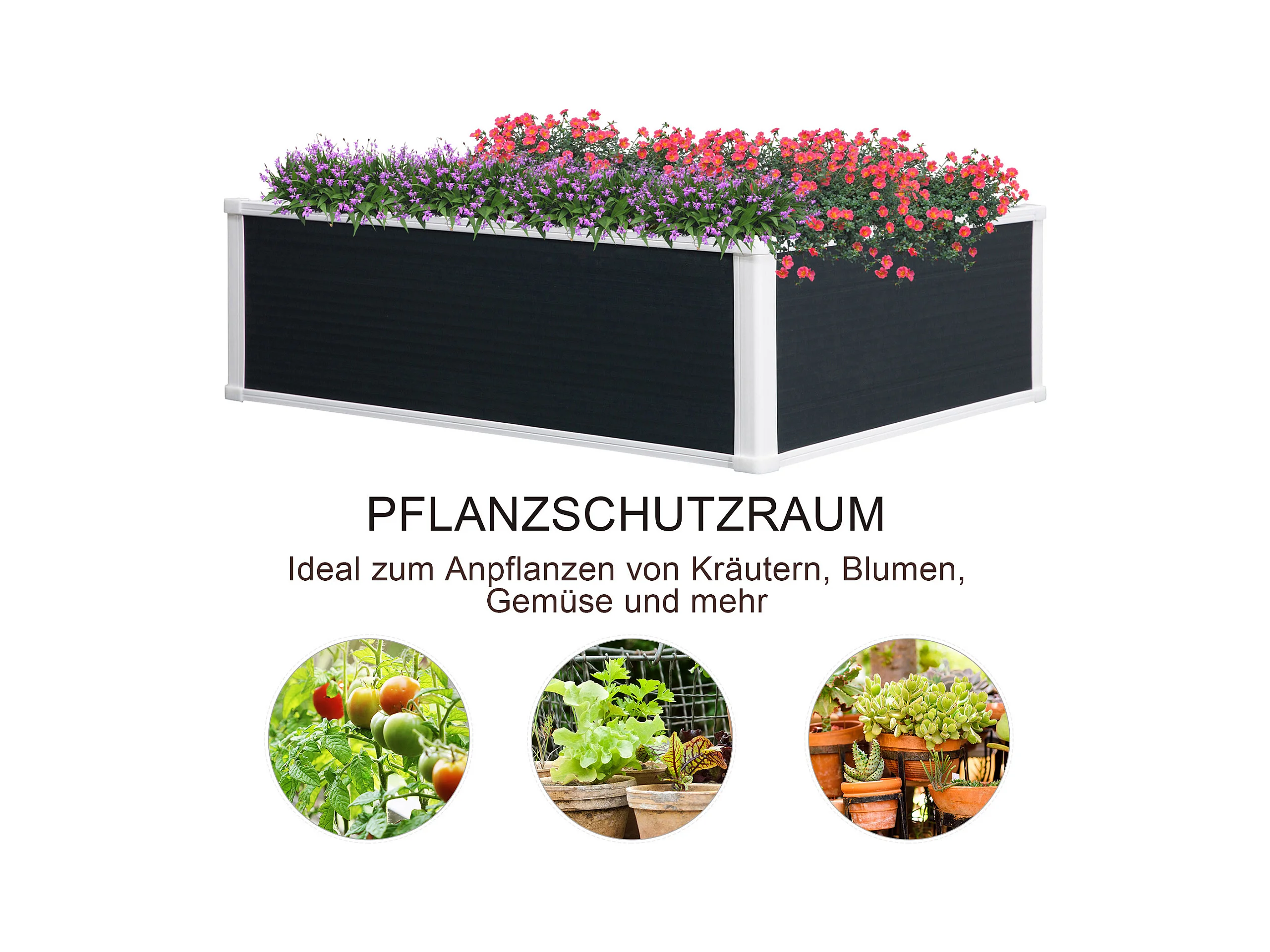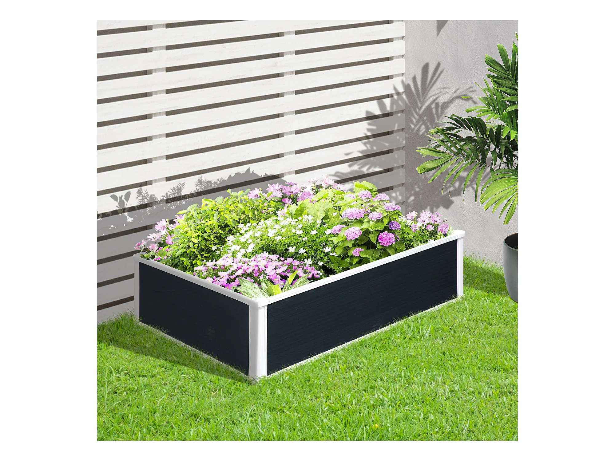 Bac à fleurs surélevé avec drainage, en plastique, gris (100x80x30 cm)