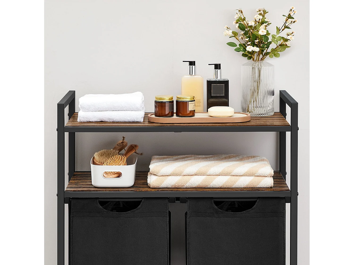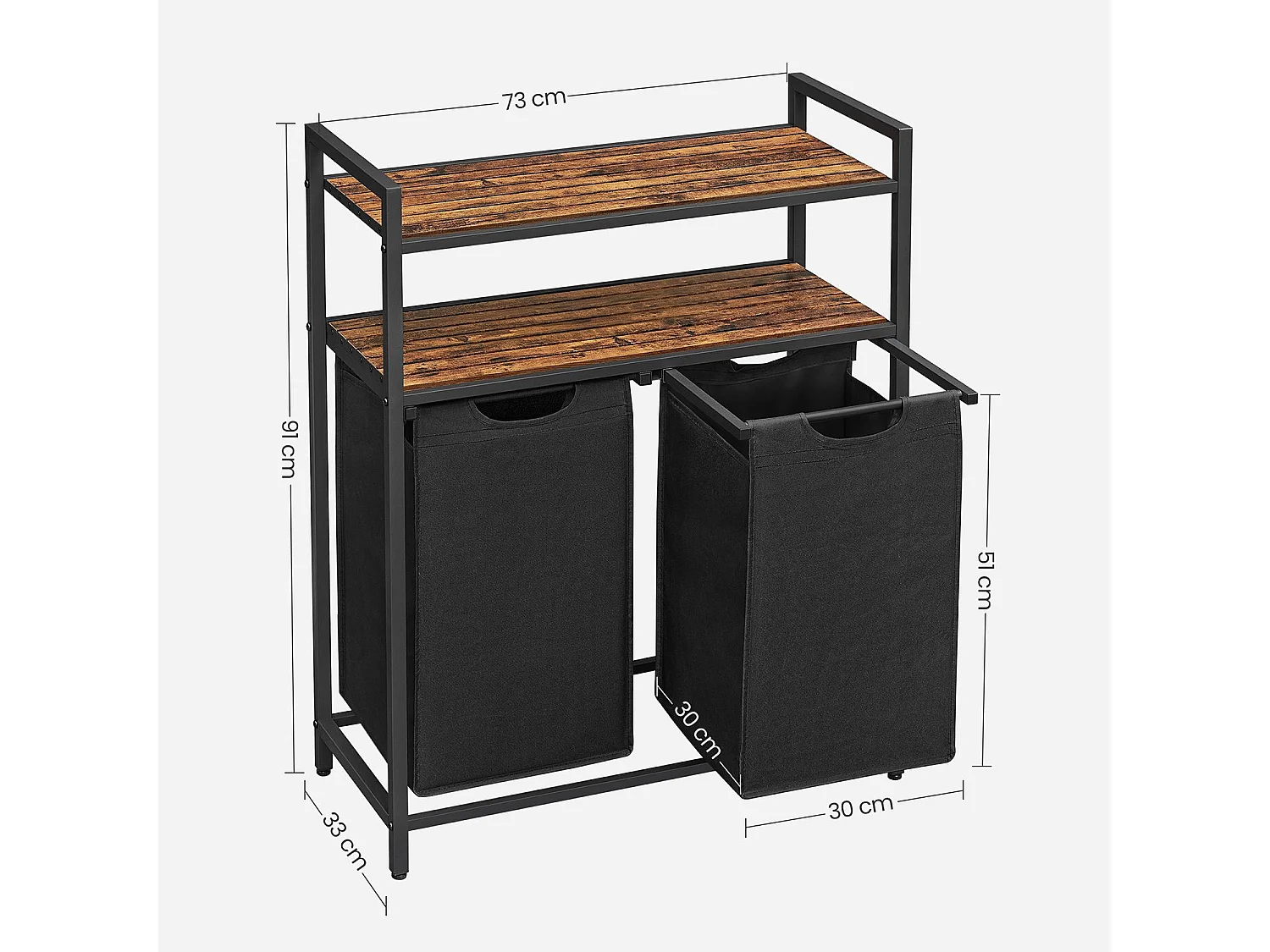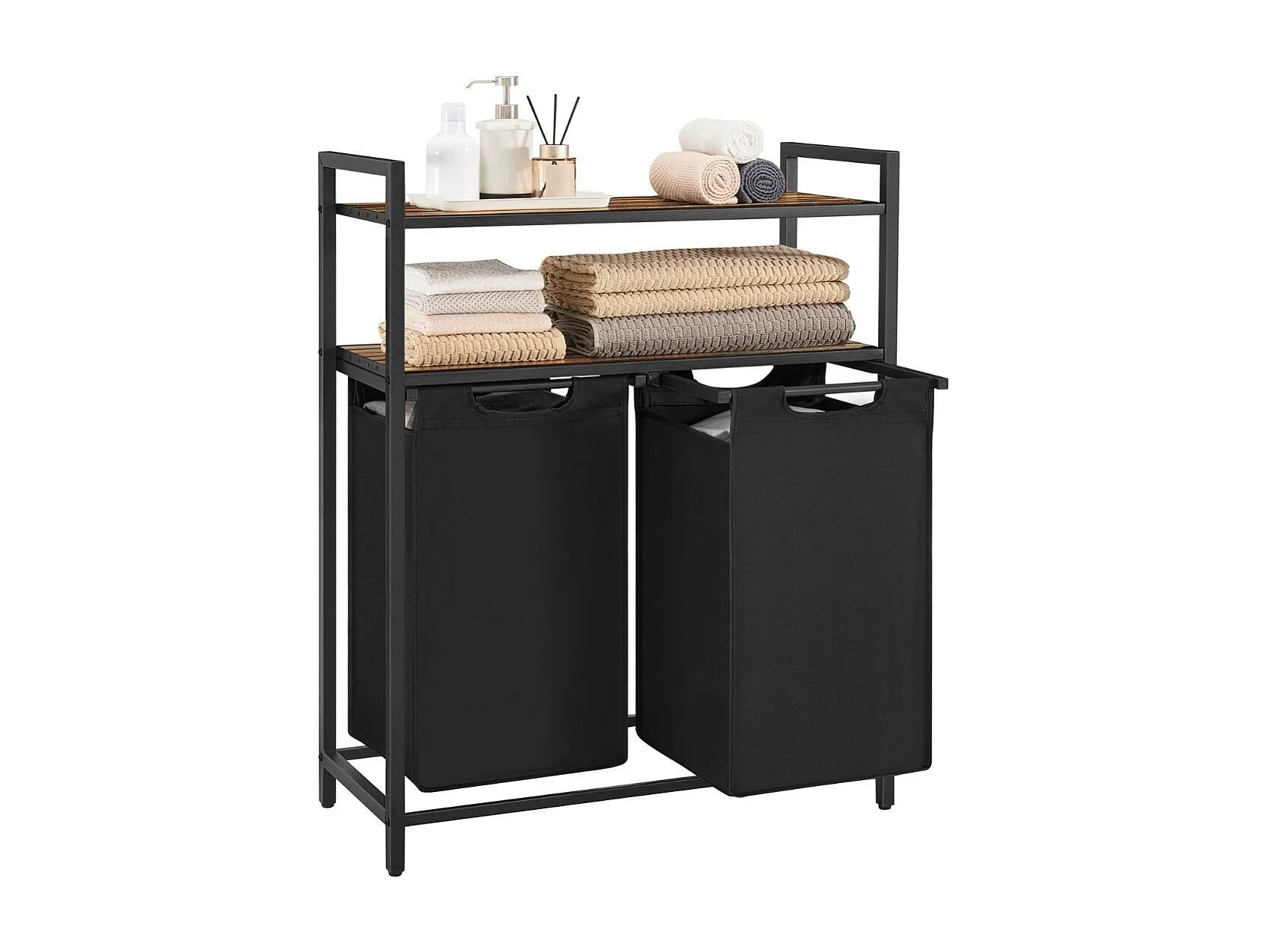 Bac à linge avec 2 compartiments de 46L et 2 étagères