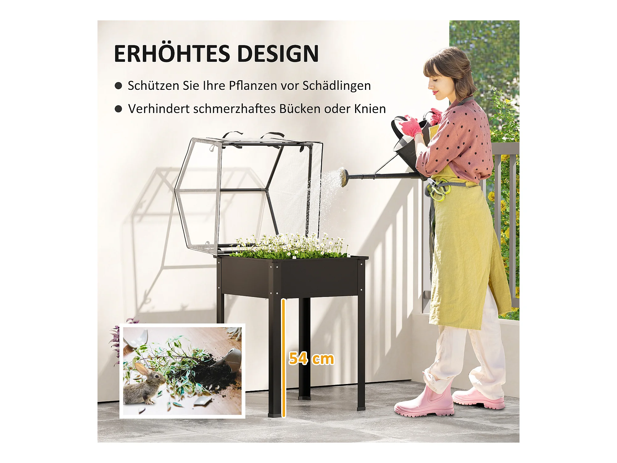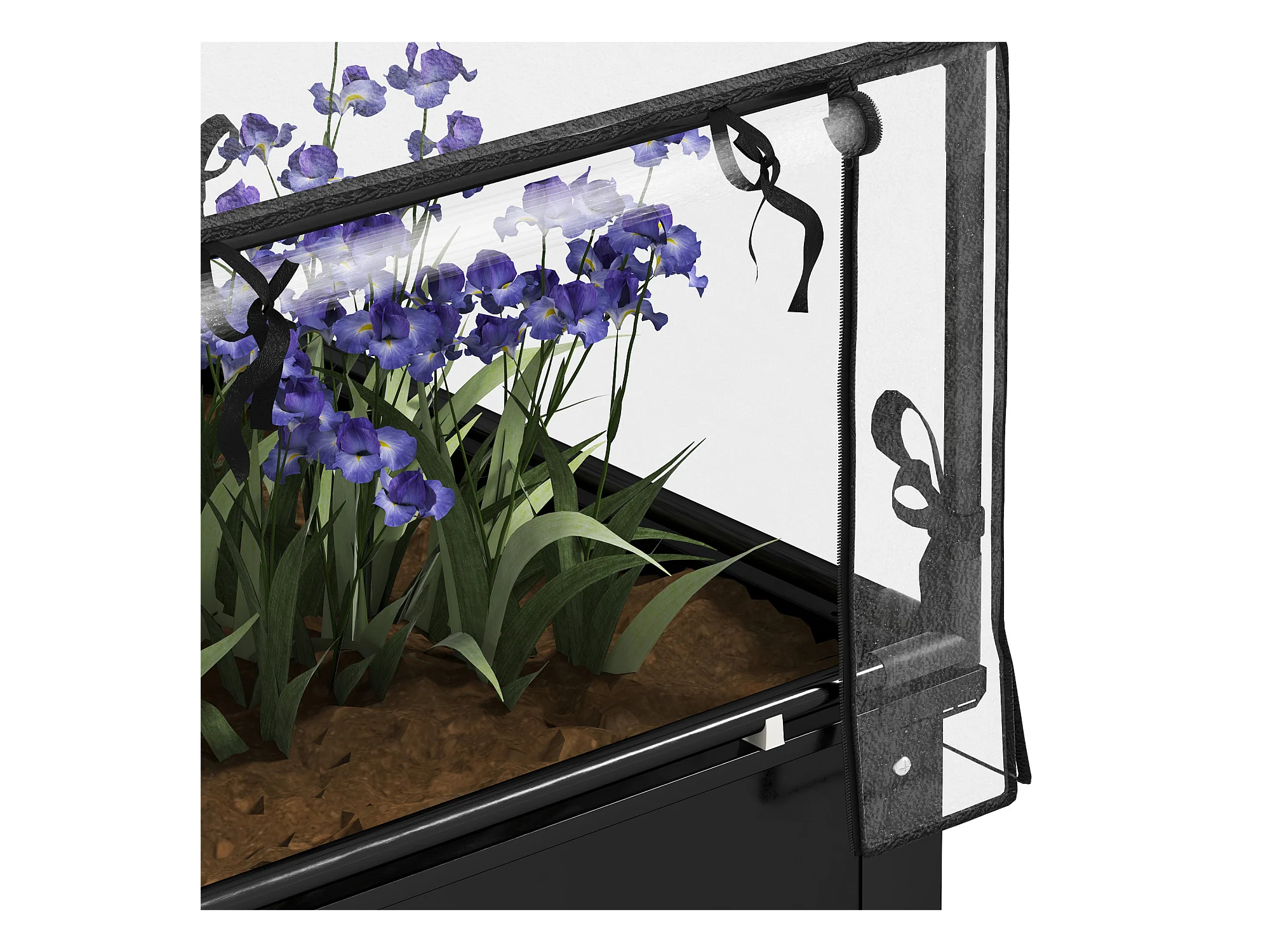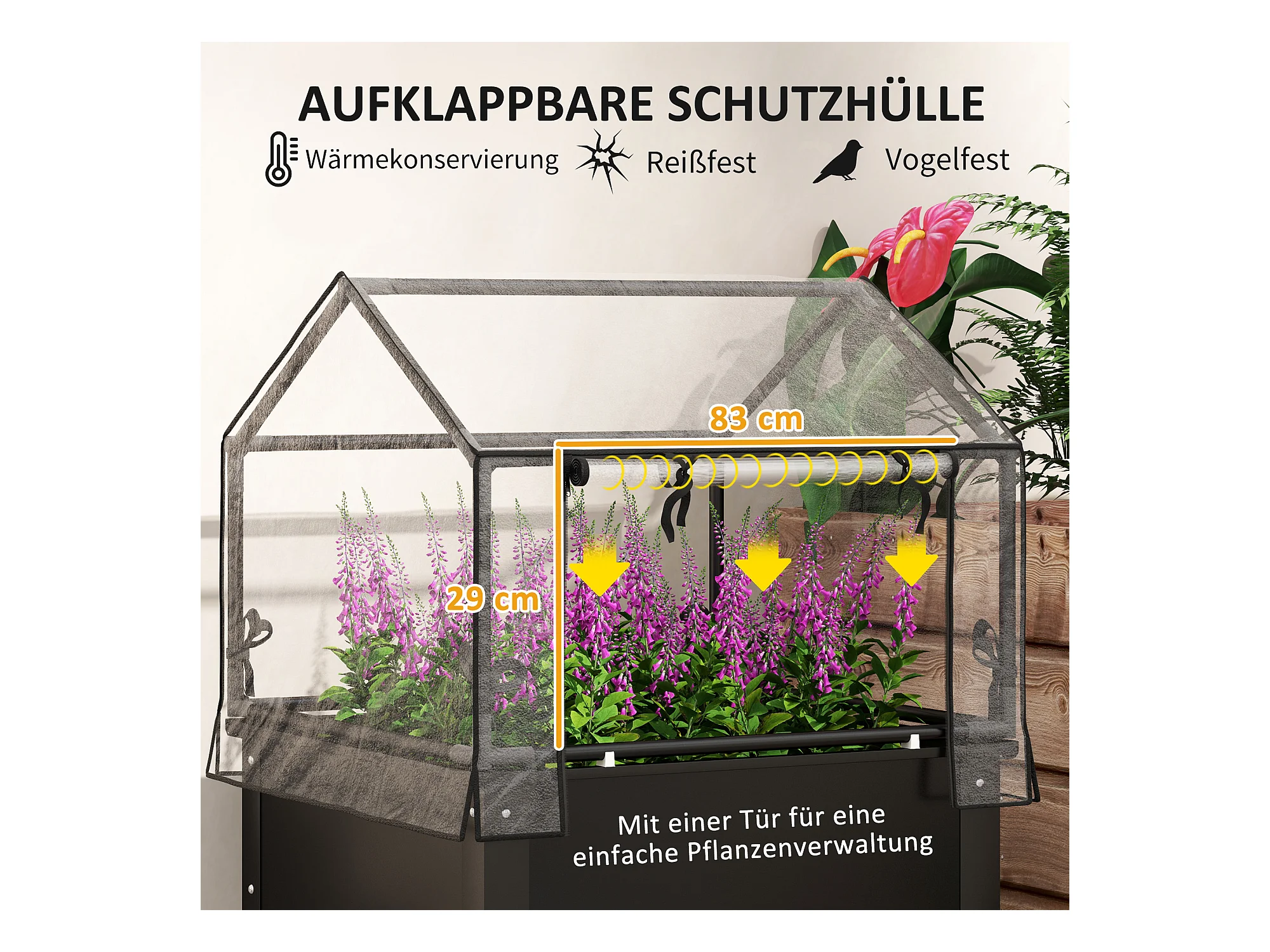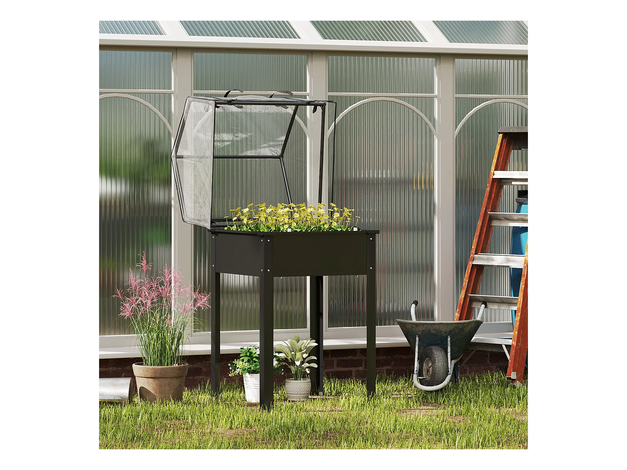Bac à plantes surélevé avec couvercle transparent, métal résistant, noir (60x60x120cm)