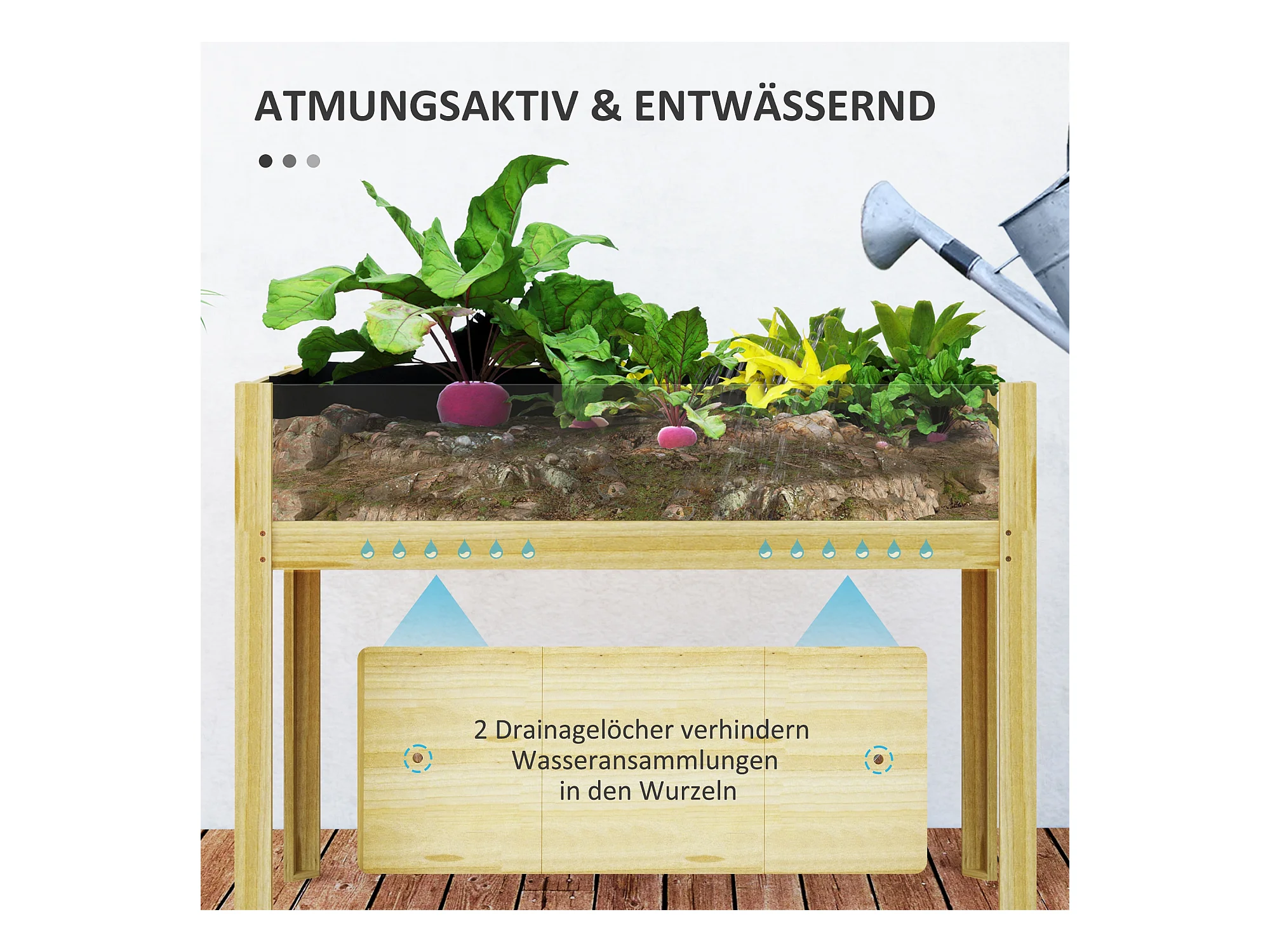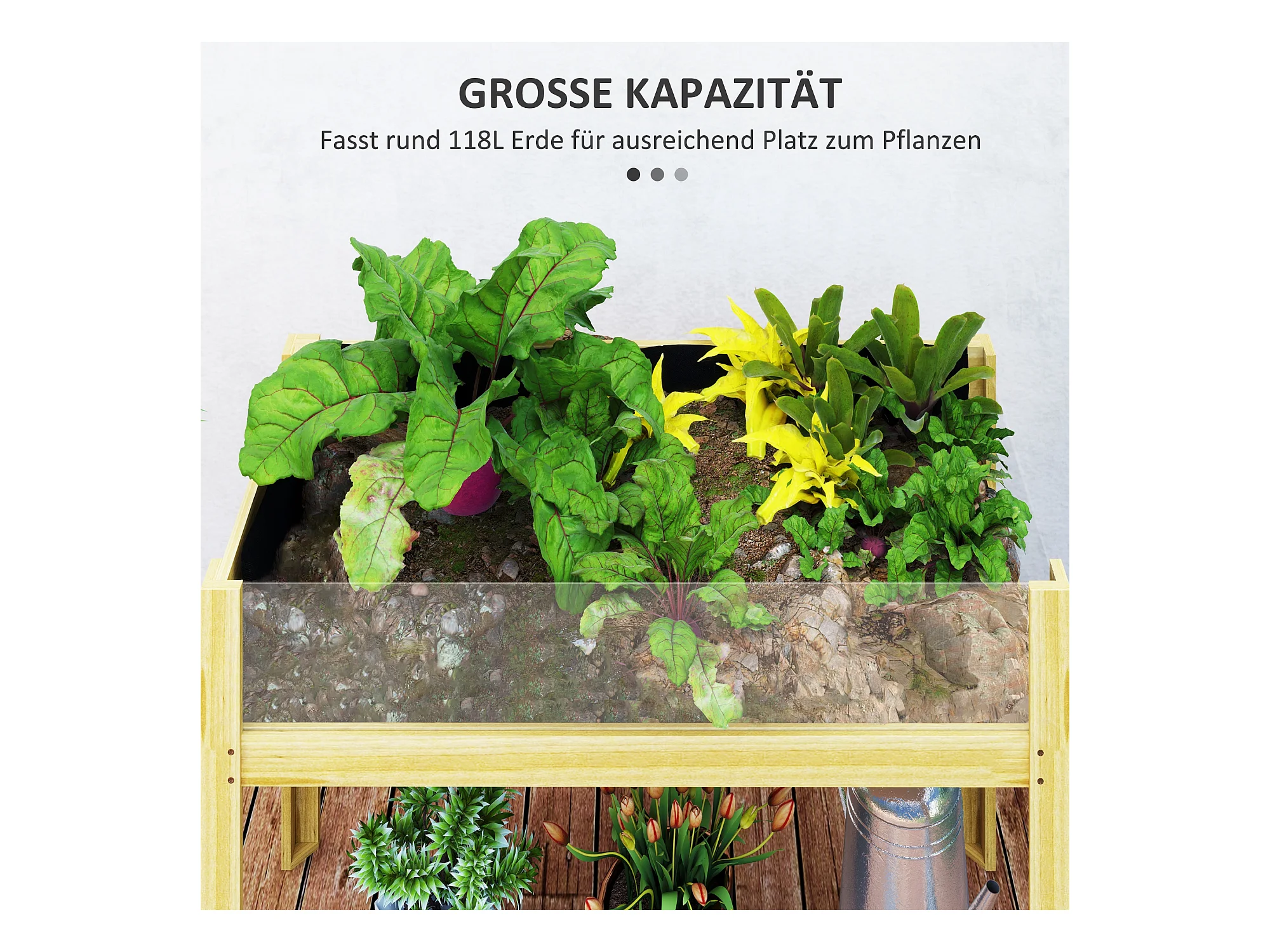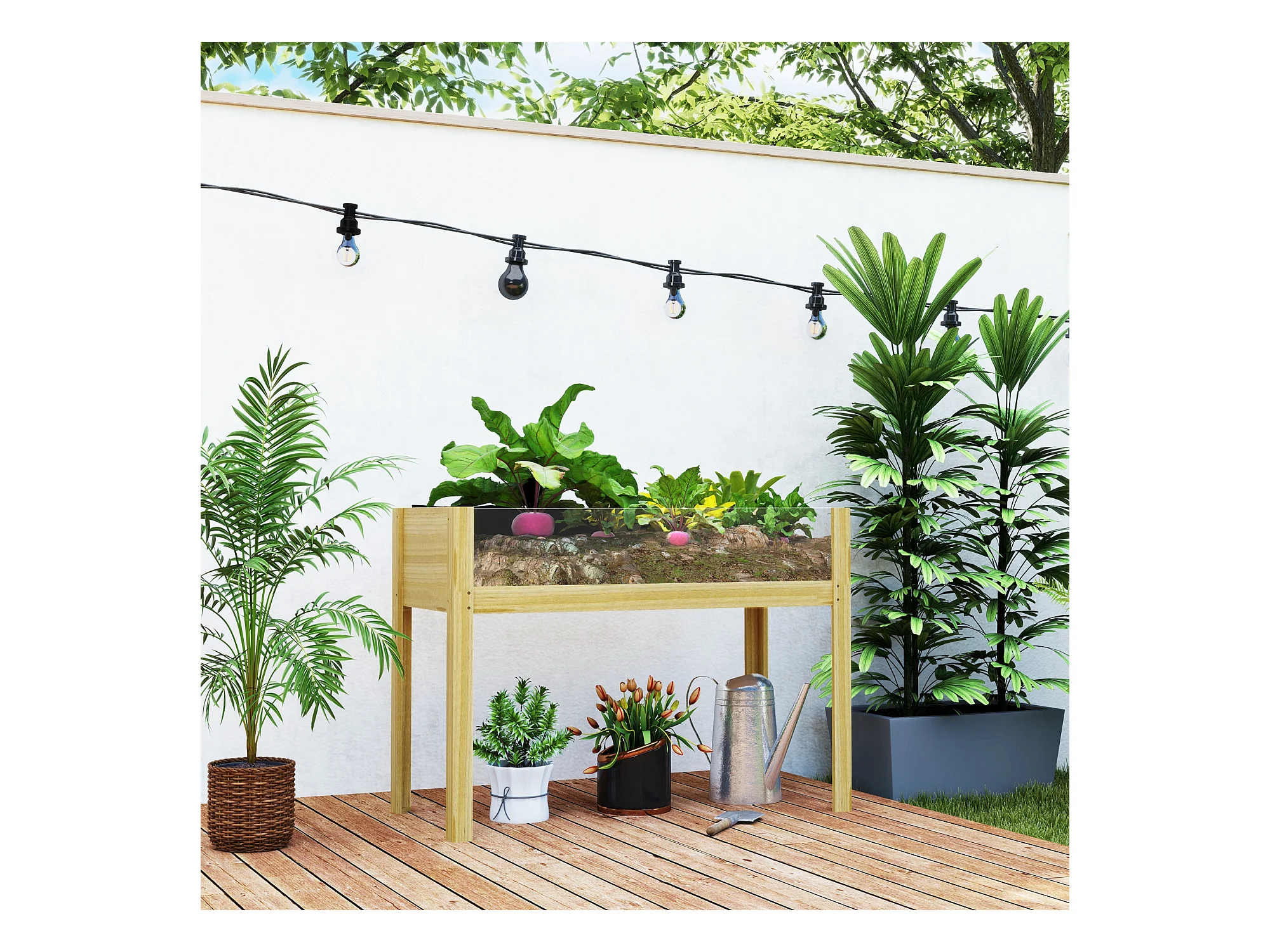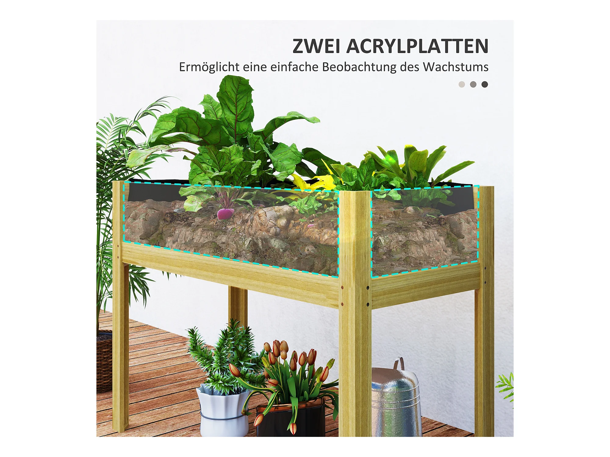 Bac à plantes surélevé avec plaques acryliques, drainage intégré, bois naturel (110x50x80cm)