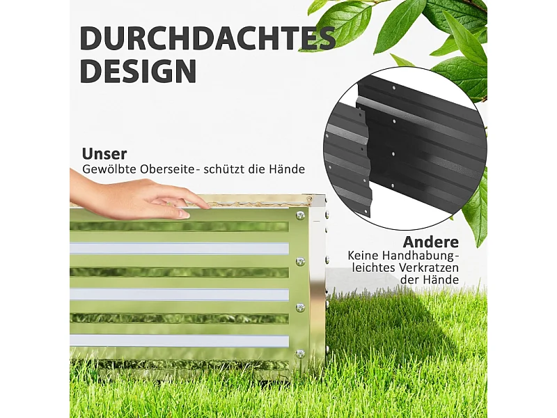 Jardinière surélevée en acier, résistante aux intempéries, avec bord anti-coupure, argenté (180x90x30cm)