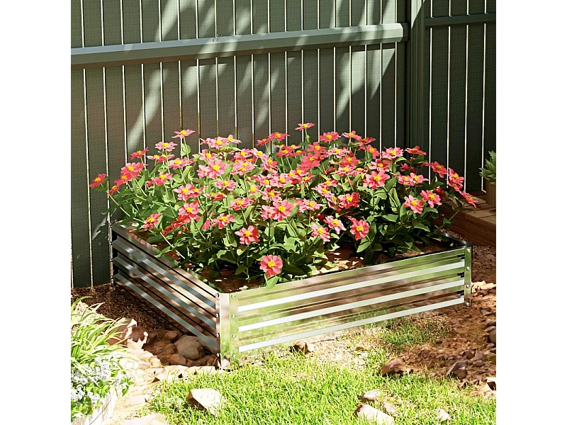 Jardinière surélevée en acier, résistante aux intempéries, pour jardin, balcon, acier galvanisé, argent (120x60x30.5 cm)