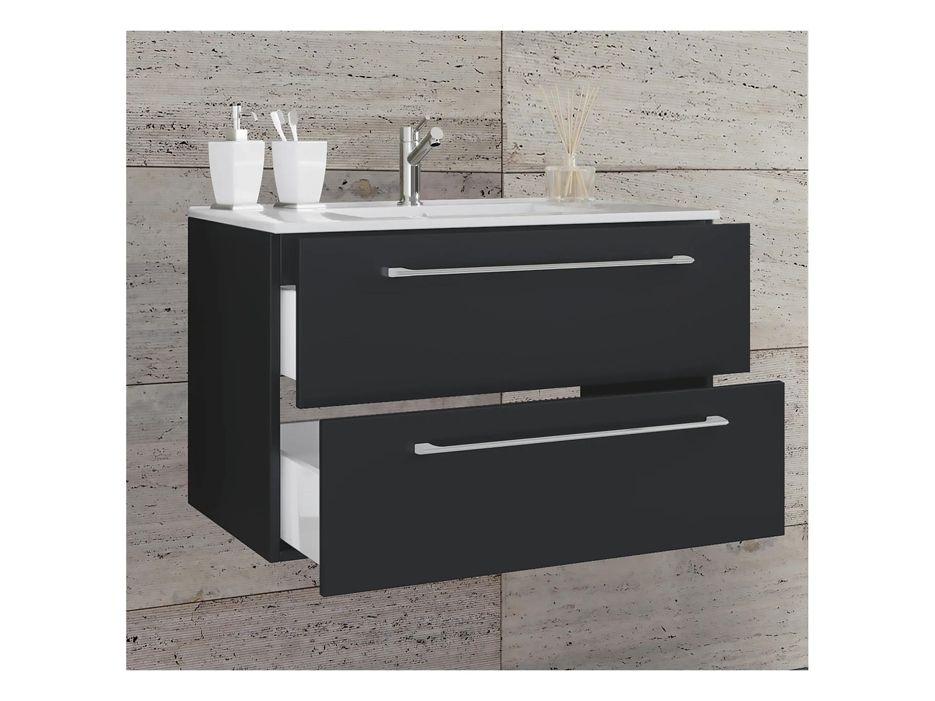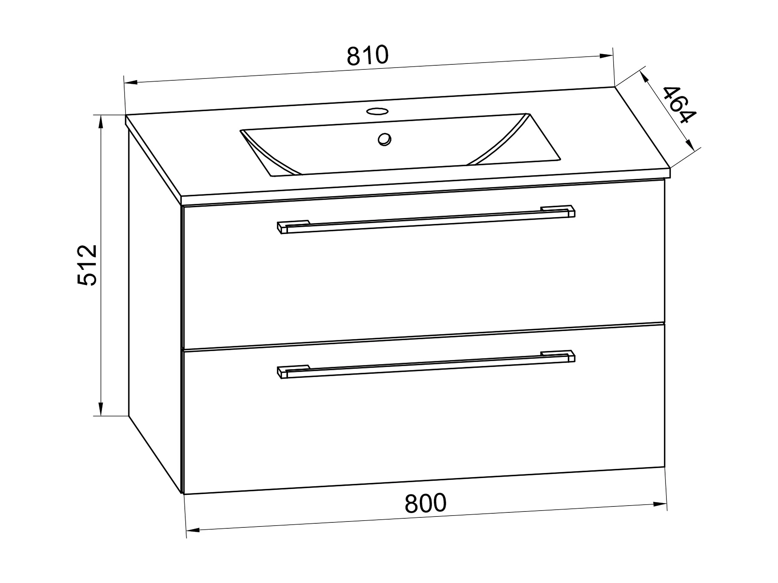 Bathroom furniture washbasin Badinos Black H. 52 x W. 80 x D. 46 cm
