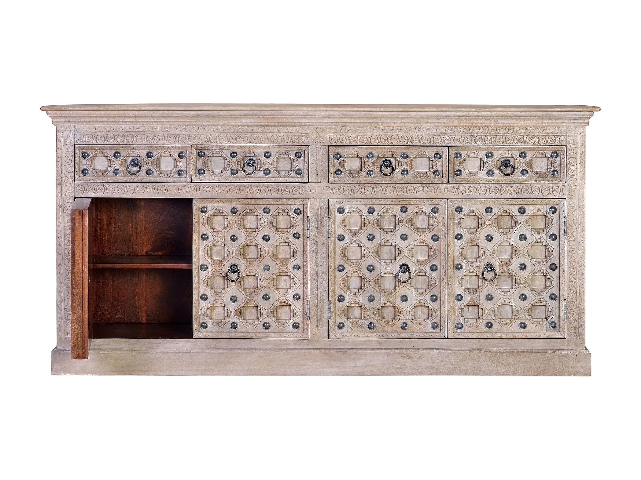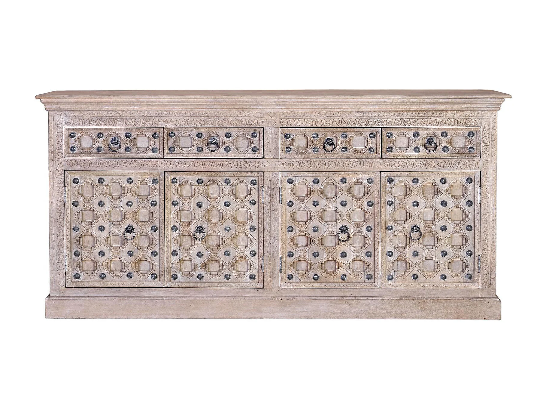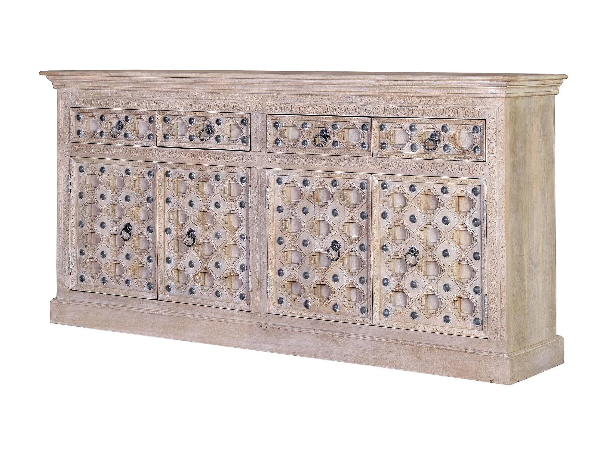 Buffet en bois de manguier avec quatre portes décorées et finition naturelle