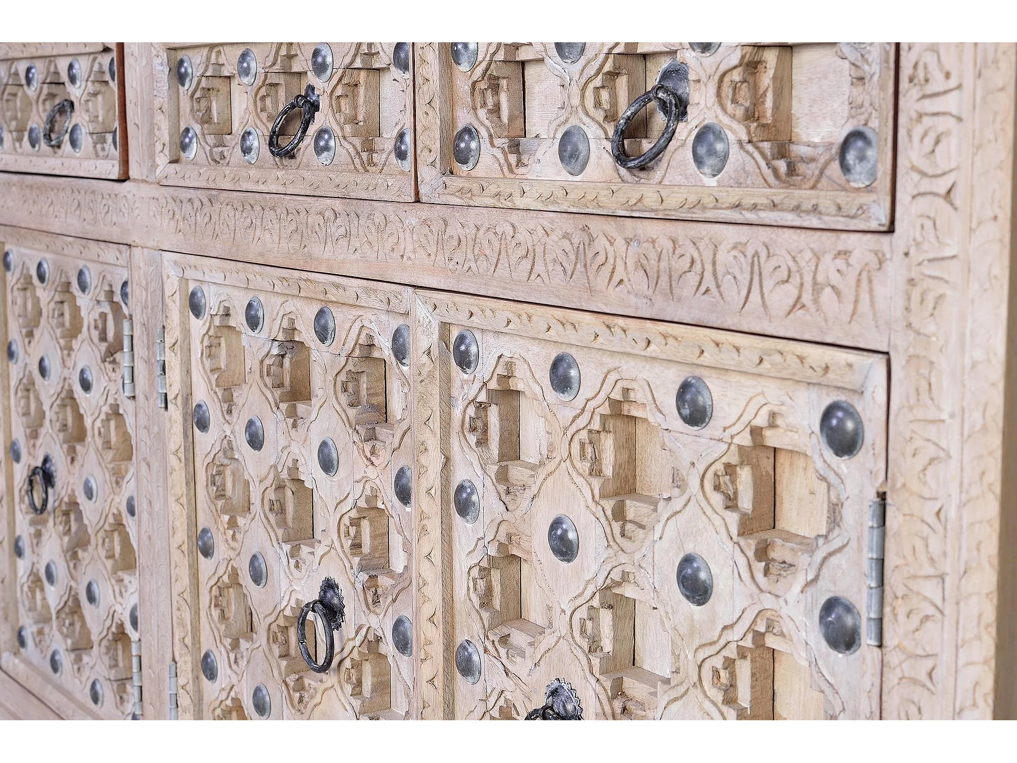 Buffet sculpté à la main avec deux tiroirs et deux portes