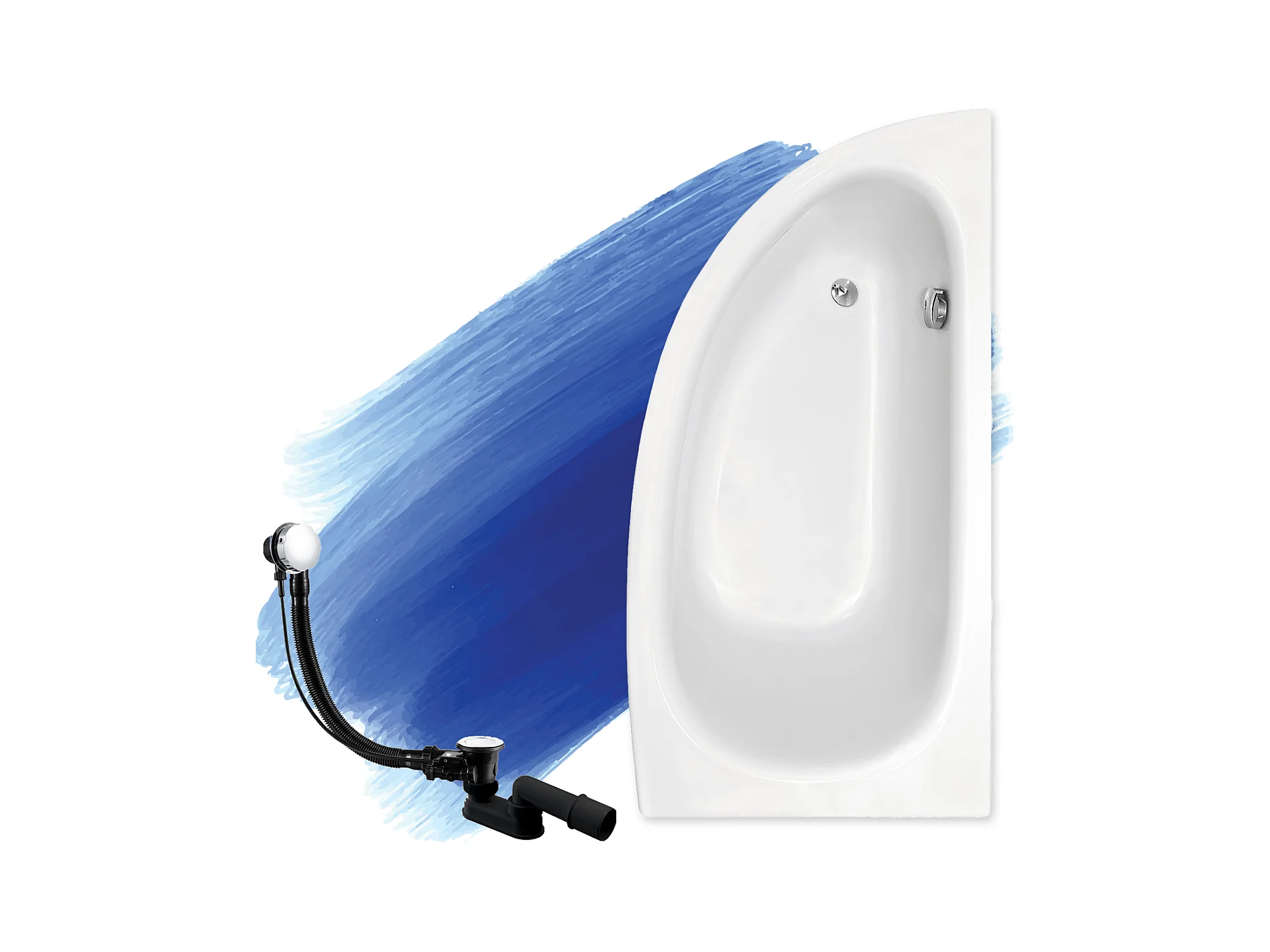Baignoire asymétrique 150x70 Gauche MILENA PREMIUM acrylique blanc, sans Habillage + Poignées + Repose Tête + Pieds + Vidage à chromé