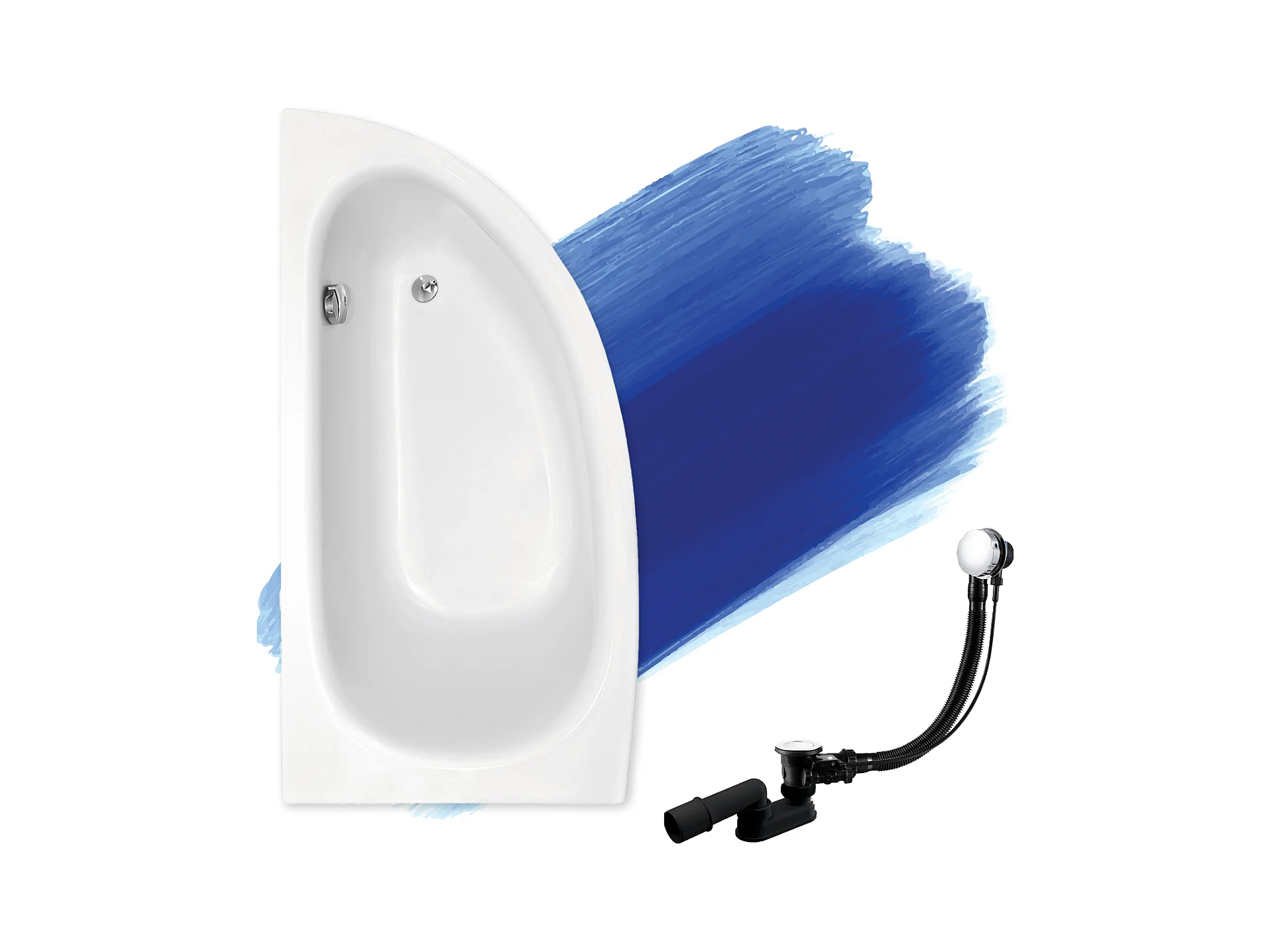 Baignoire asymétrique 150x70 Droite MILENA acrylique blanc + avec Tablier + Pieds + Vidage à chromé