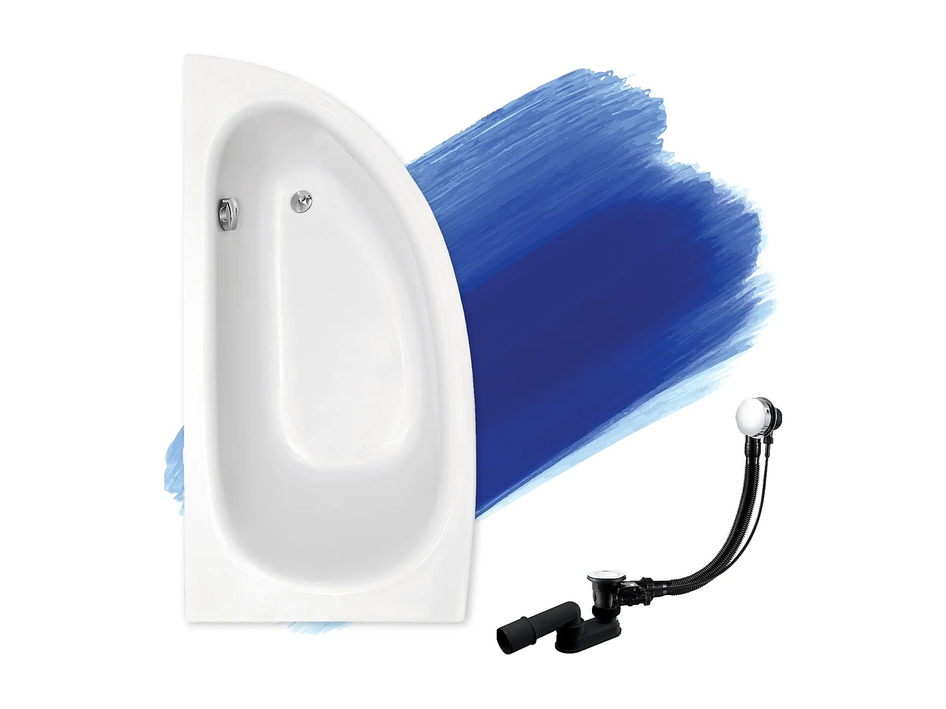 Baignoire asymétrique 150x70 Gauche MILENA acrylique blanc, sans Habillage + Pieds + Vidage à chromé