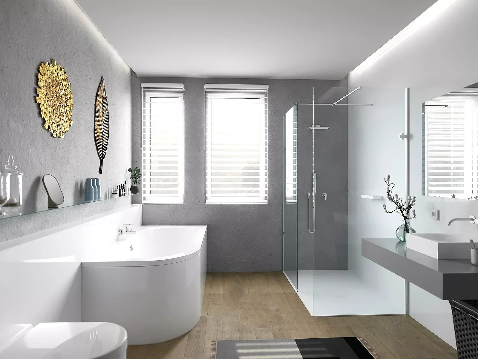 Baignoire asymétrique 150x75 Droite AVITA acrylique blanc + avec Tablier + Pieds + Vidage à chromé