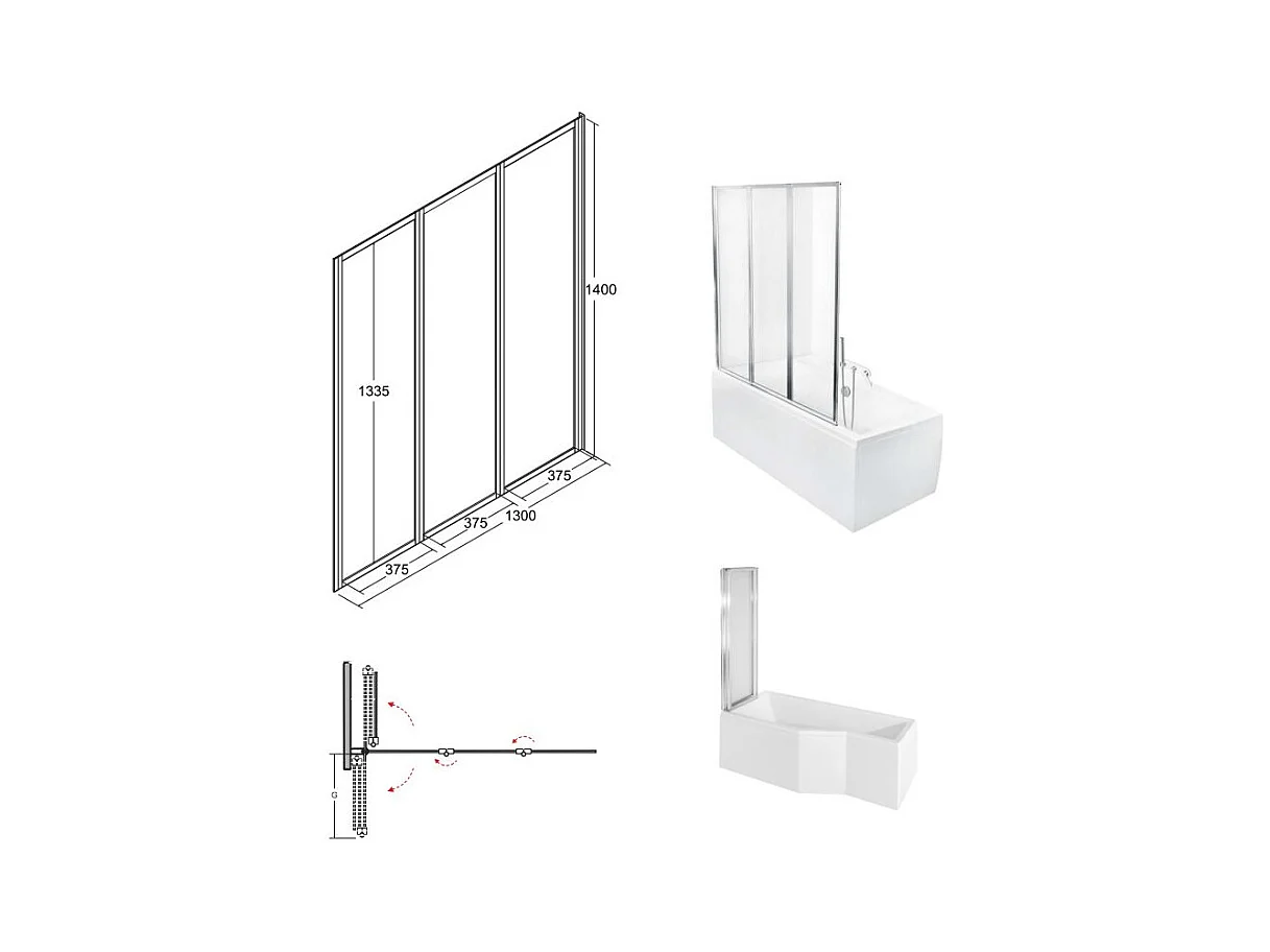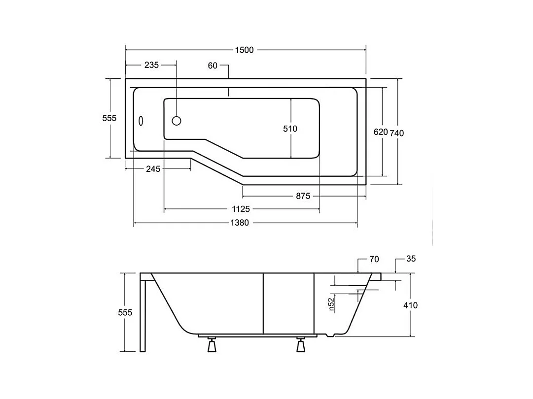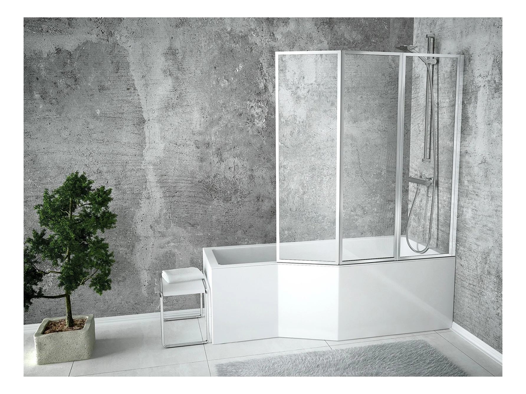 Baignoire asymétrique 150x75 Droite INTEGRA acrylique blanc, sans Habillage + Écran + Pieds + Vidage à chromé