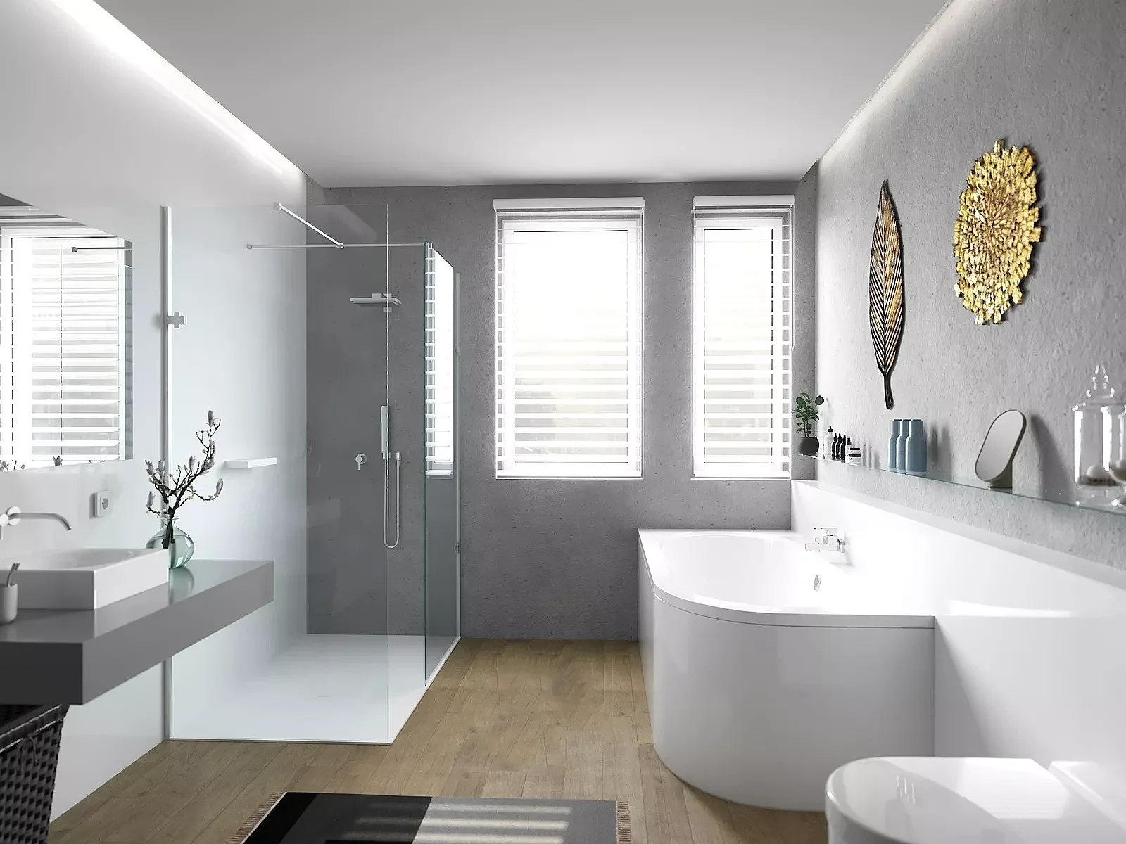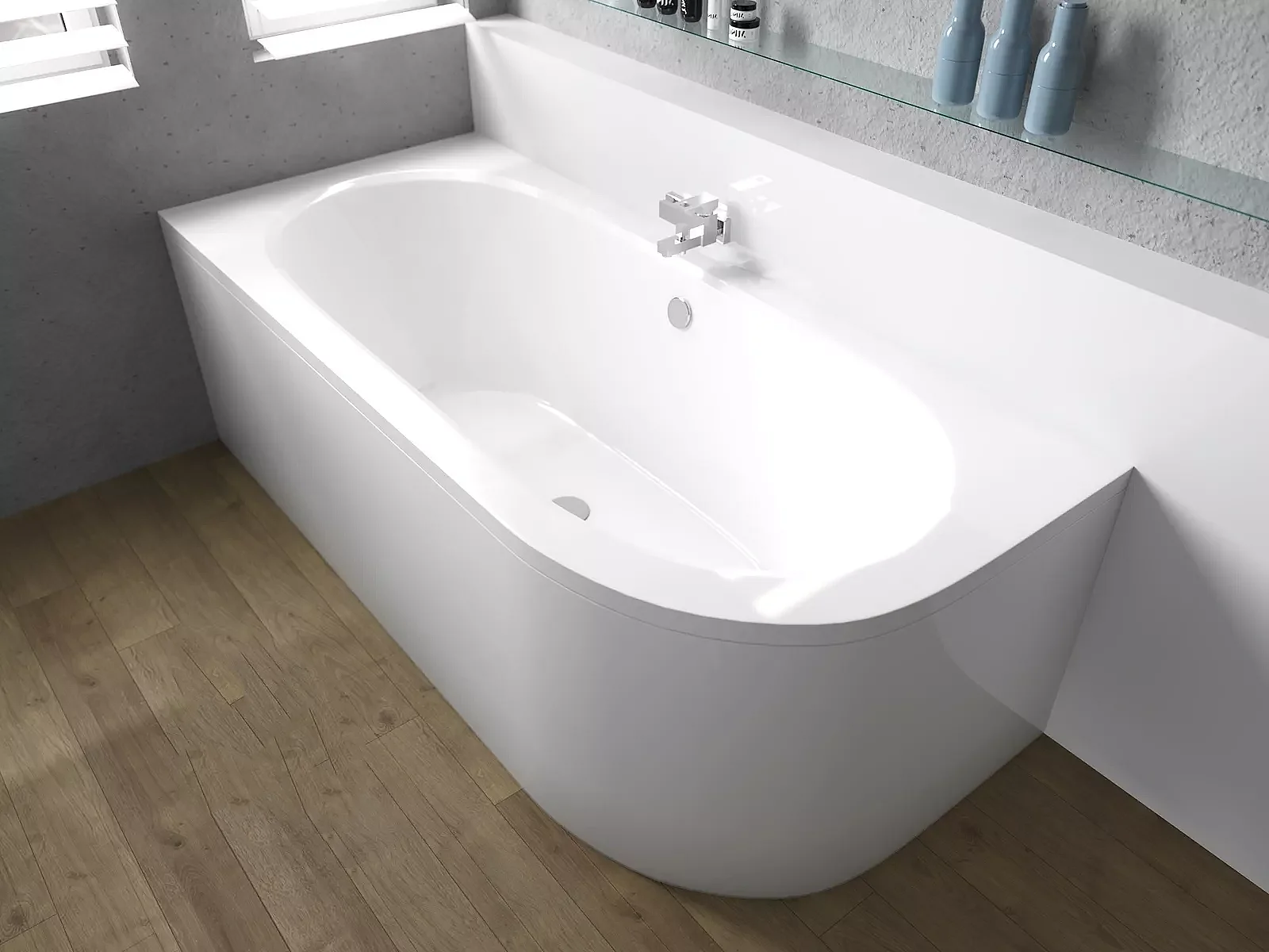 Baignoire asymétrique 150x75 Gauche AVITA acrylique blanc + avec Tablier + Pieds + Vidage à chromé