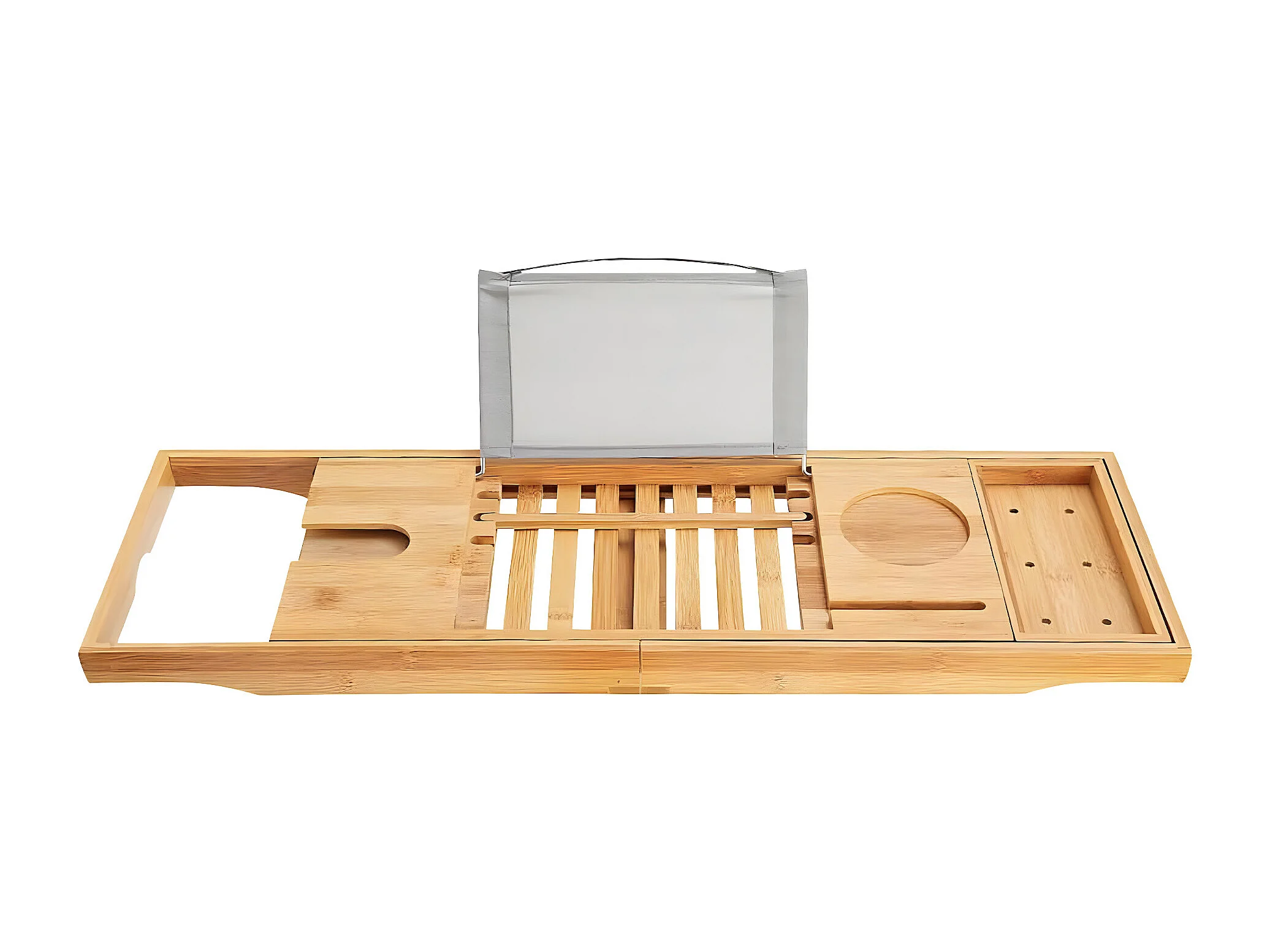 Baignoire asymétrique 150x85 Droite INTIMA acrylique blanc, sans Habillage + Repose Tête + Étagère bambou + Pieds + Vidage à chromé