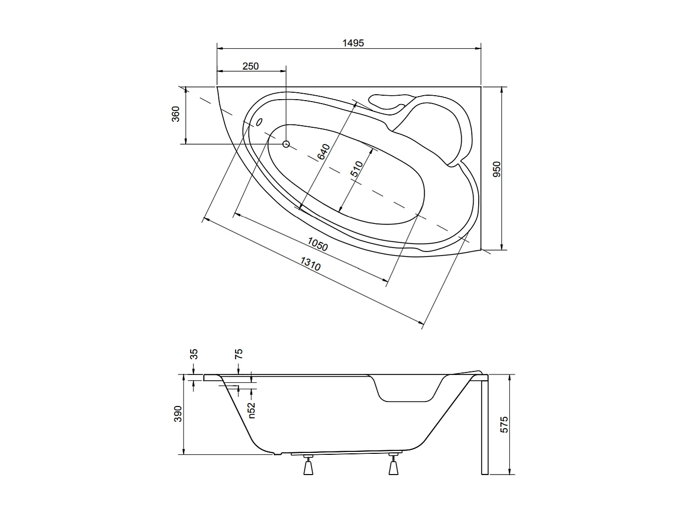 Baignoire asymétrique 150x95 Droite BIANKA acrylique blanc + Habillage en polystyrène + Pieds + Vidage à chromé