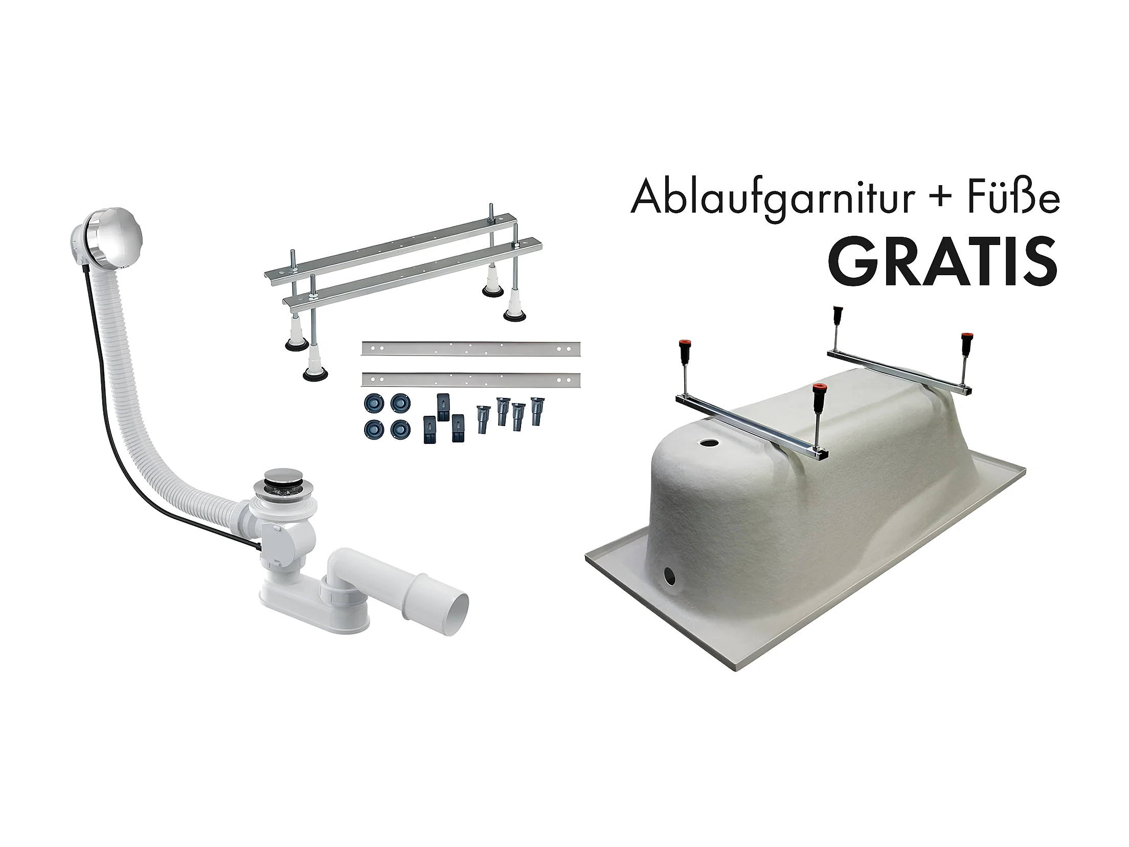Baignoire asymétrique 150x95 Gauche BIANKA acrylique blanc + avec Tablier + Pieds + Vidage à chromé