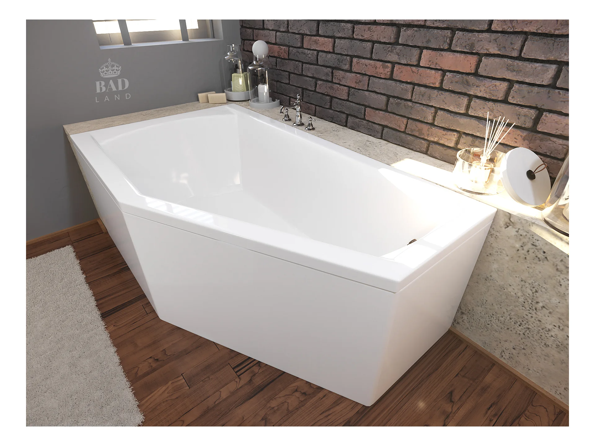 Baignoire asymétrique 160x105 Gauche MEGA acrylique blanc + avec Tablier + Pieds + Vidage à chromé