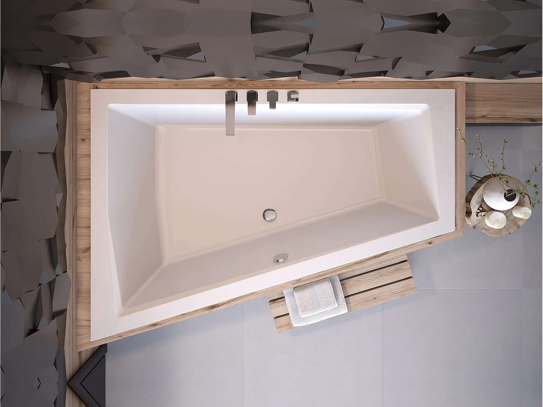 Baignoire asymétrique 180x125 Droite INTIMA acrylique blanc, sans Habillage + Pieds + Vidage à chromé